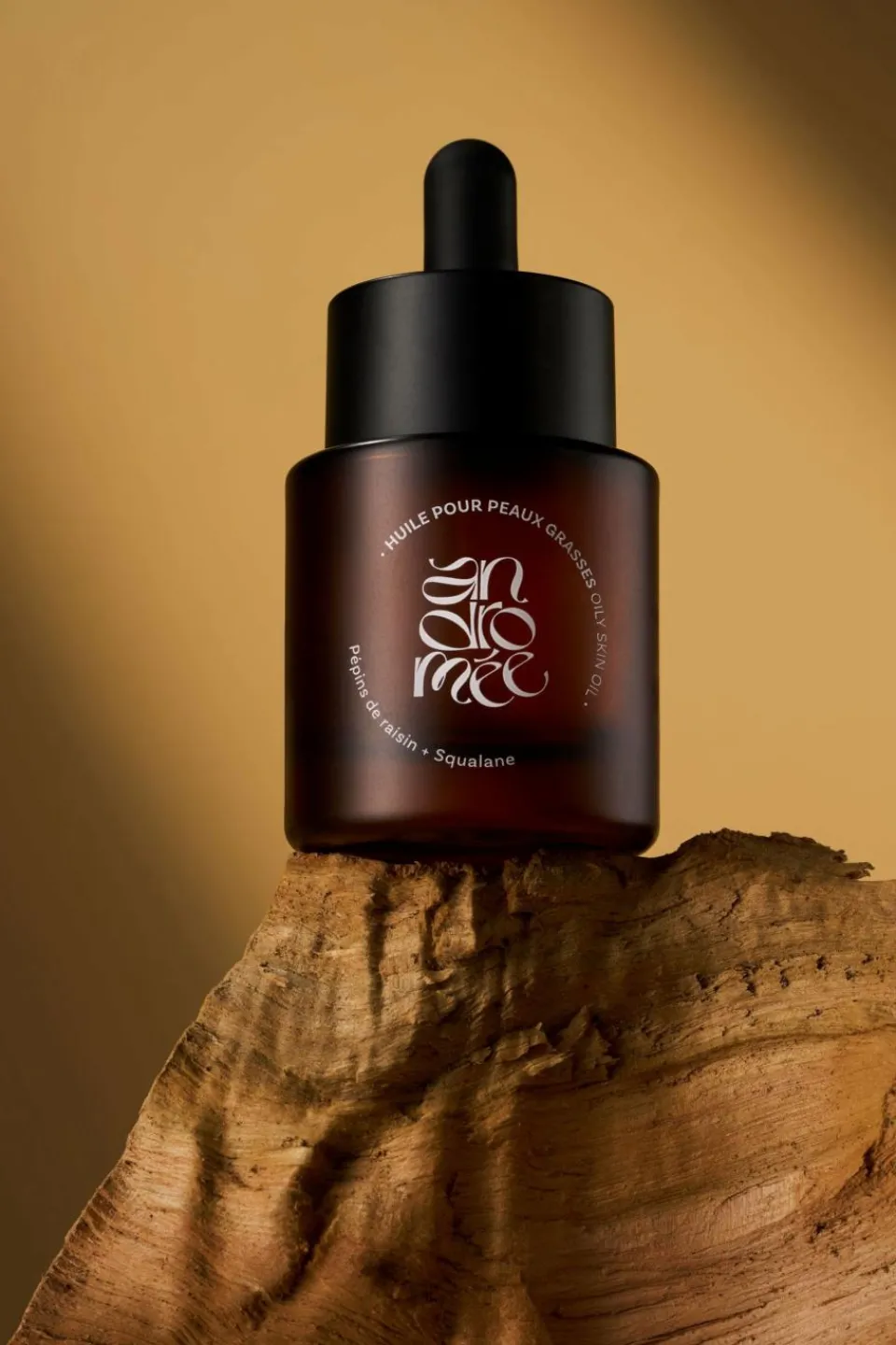 L’huile de pépins de raisin régule la production de sébum et affine le grain de peau grâce à ses propriétés astringentes, tandis que le squalane hydrate sans alourdir ni obstruer les pores, laissant la peau équilibrée et matifiée.