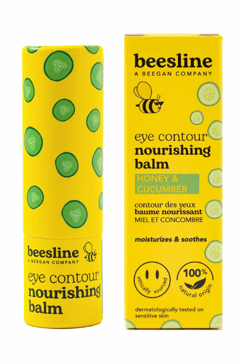 Découvrez notre baume contour des yeux en format stick, 100% d’origine naturelle et pratique à appliquer. Riche en extrait de concombre, il réduit les poches et les cernes tandis que le miel hydrate et nourrit la peau. Le thé Matcha agit comme un antioxydant, protégeant la peau délicate du contour des yeux contre les dommages causés par les rayons UV. 93% ont ressenti un contour des yeux plus hydraté*. Noté 100/100 sur Yuka.