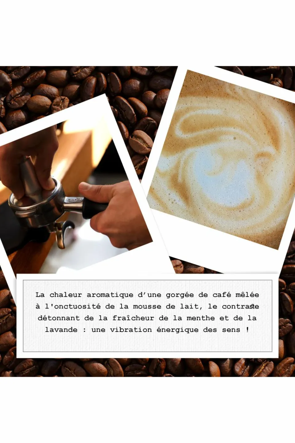 Une Fougère oriental twistée par une addiction lactée et torréfiée unique : un départ énergique qui introduit un cœur frais mêlant l’Essence de Lavande et la Menthe Verte à l’Absolu de Fleurs d’Oranger, avant de laisser place à un sillage chaleureux. En fond, c’est au tour de la mousse de lait, crémeuse et légèrement boisée par l’Essence de Bois de Santal et de Cèdre de Virginie, de s’exprimer pleinement pour un effet enveloppant.