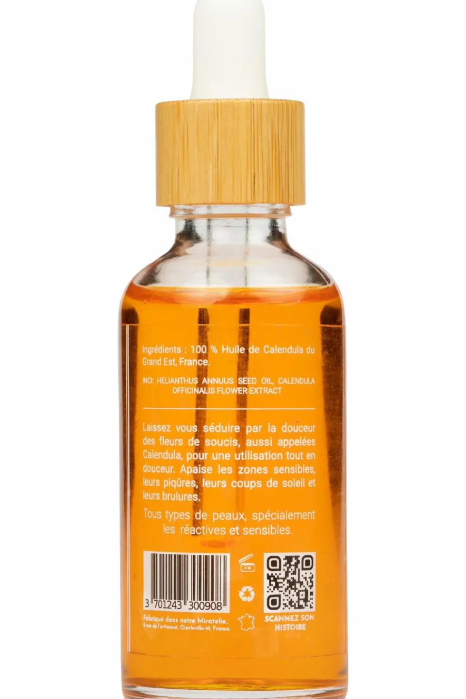 Notre huile de calendula est 100% faite en France et apaise les peaux sensibles, irritées. Si votre peau réagit souvent, qu’elle est souvent irritée, notre huile de Calendula l’adoucit, lui redonne de l’élasticité. C’est l’huile parfaite pour les peaux très sensibles, fragiles. En somme, vous ne pensez qu’aucun produit naturel n’est adaptée à votre peau compliquée ? C’est que vous n’avez pas encore essayé notre Hôtel Calendula, parfaite pour vous.