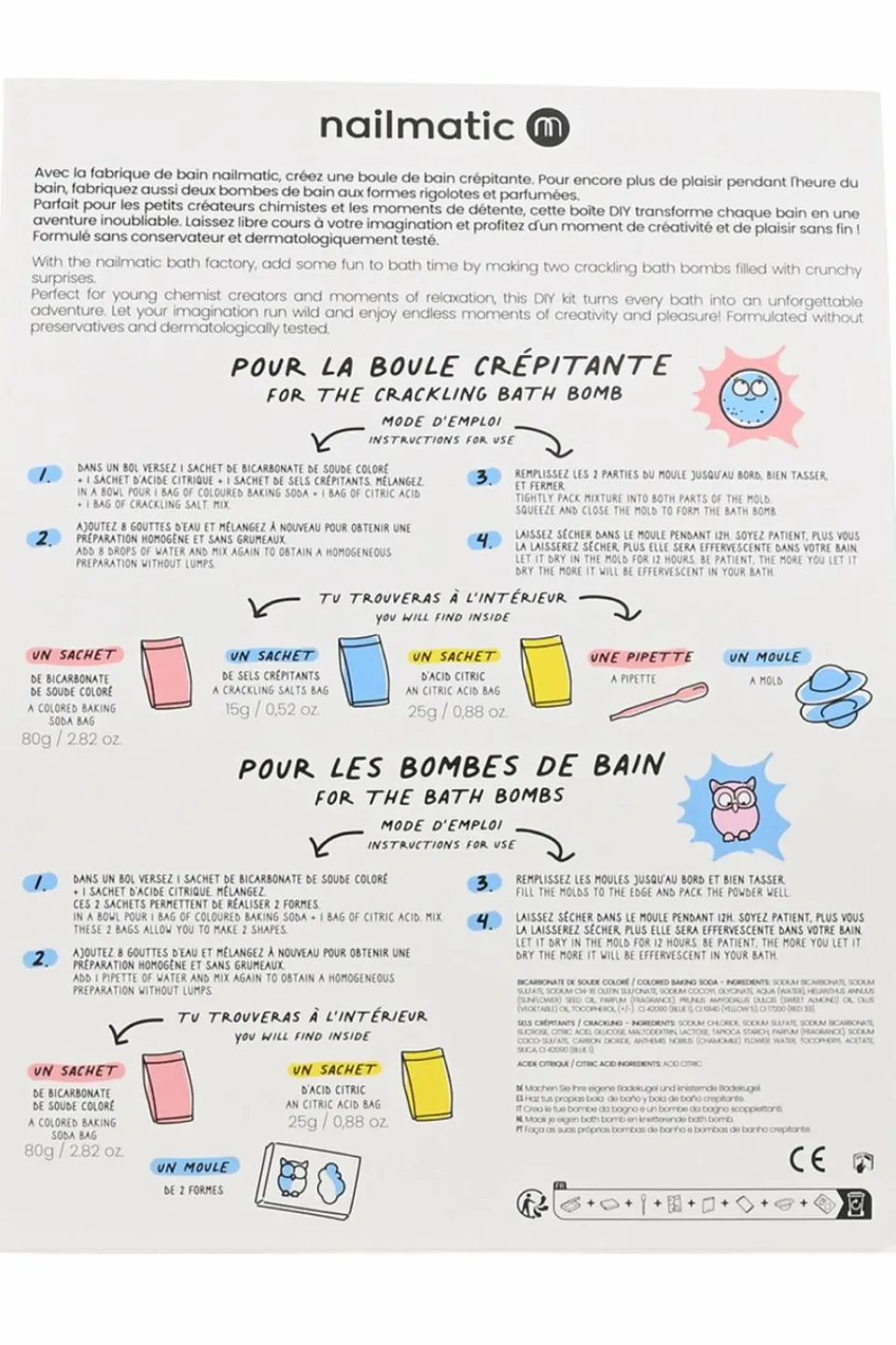 Avec ce coffret, les enfants peuvent créer deux bombes de bain en forme de chouette et de nuage, ainsi qu’une boule de bain crépitante. Ce kit offre aux enfants une expérience sensorielle unique, en mêlant le plaisir de la création à l’amusement de voir leurs bombes de bain se dissoudre en un tourbillon de couleurs et d’effets pétillants dans l’eau.