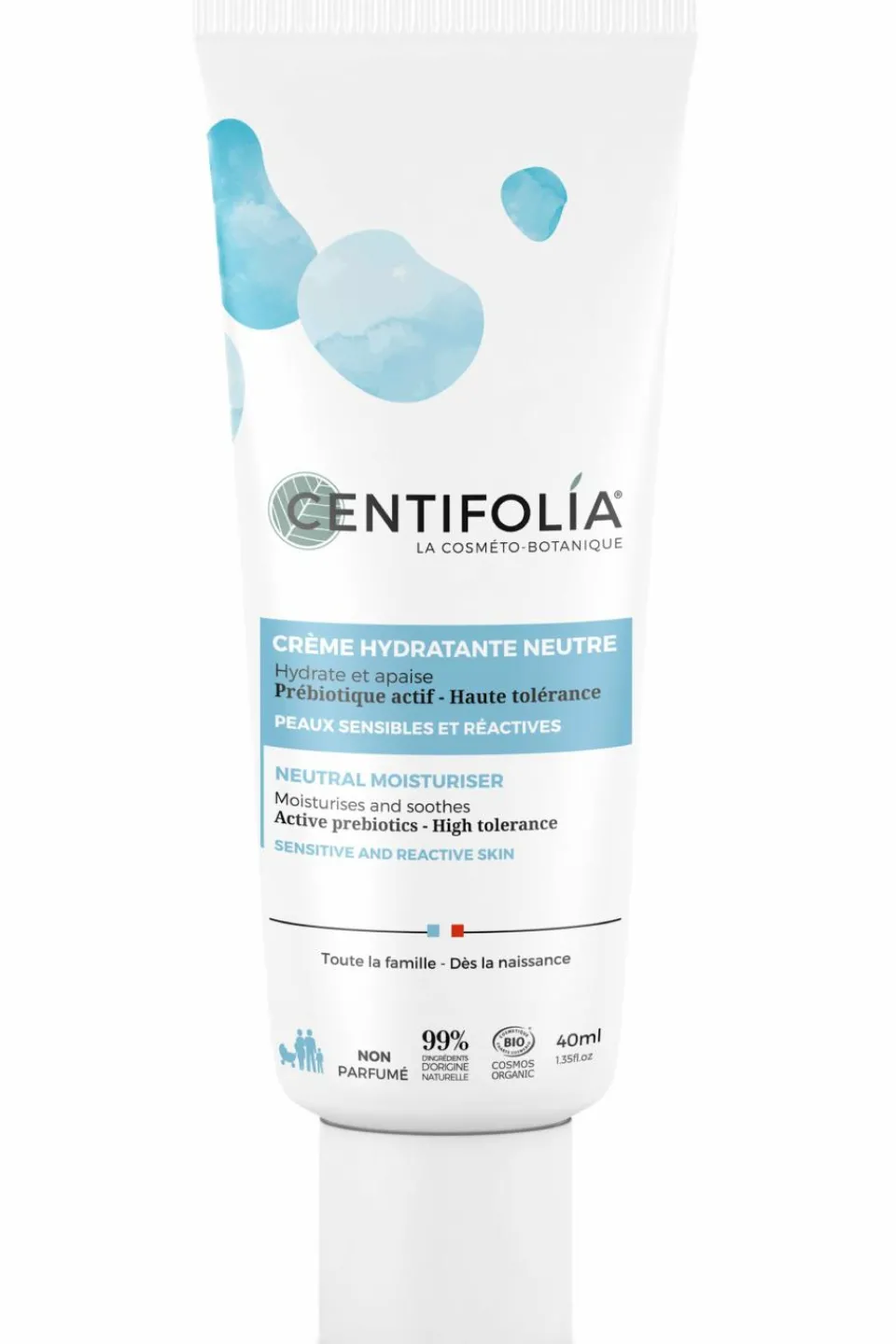 Cette crème hydrate et apaise immédiatement les peaux sensibles et réactives de toute la famille.