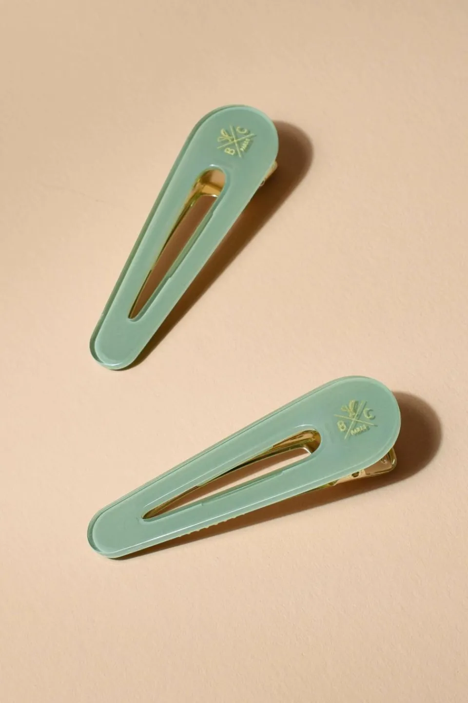 Ce duo de barrettes vert d’eau permet à toutes les natures de cheveux de fixer les mèches rebelles, tout en sublimant toutes les coiffures grâce à son joli jeu de transparence.
