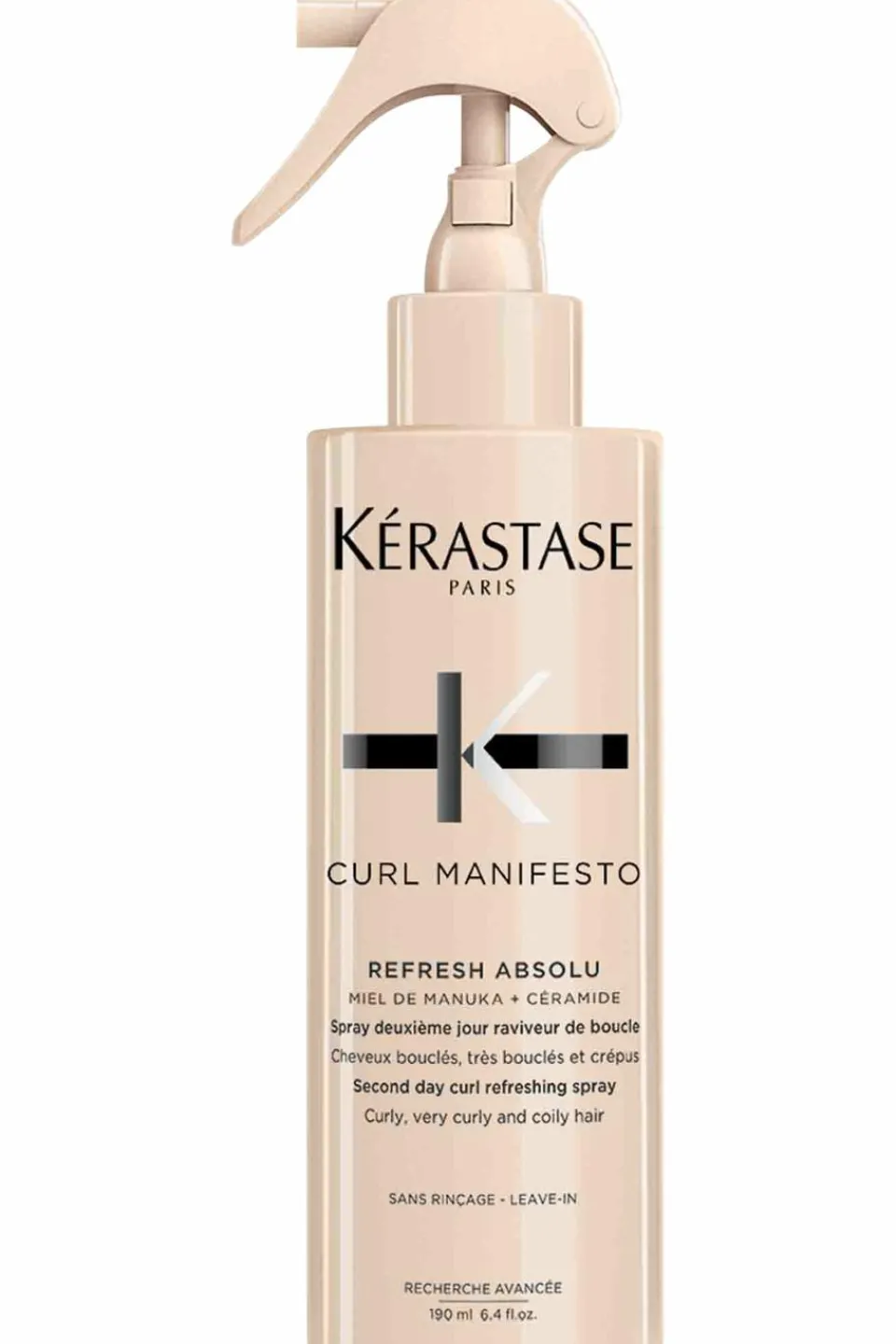 Le Spray Refresh Absolu de la gamme Curl Manifesto de Kérastase est votre nouveau geste hydratant du quotidien pour des boucles régénérées et sublimées, le matin au réveil. Adapté aux cheveux bouclés, frisés et crépus, ce spray réveille les boucles entre deux shampoings en embellissant leur forme naturelle. Il les définit instantanément en offrant rebond, action anti-frisottis pendant 24h.