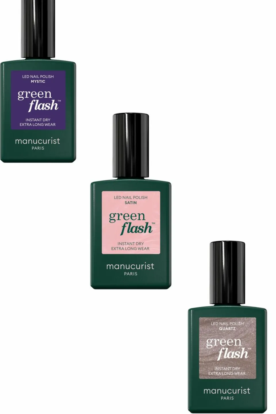 Green Flash, le 1er vernis LED sec immédiatement, ultra longue tenue et au retrait express avec un dissolvant sans acétone.