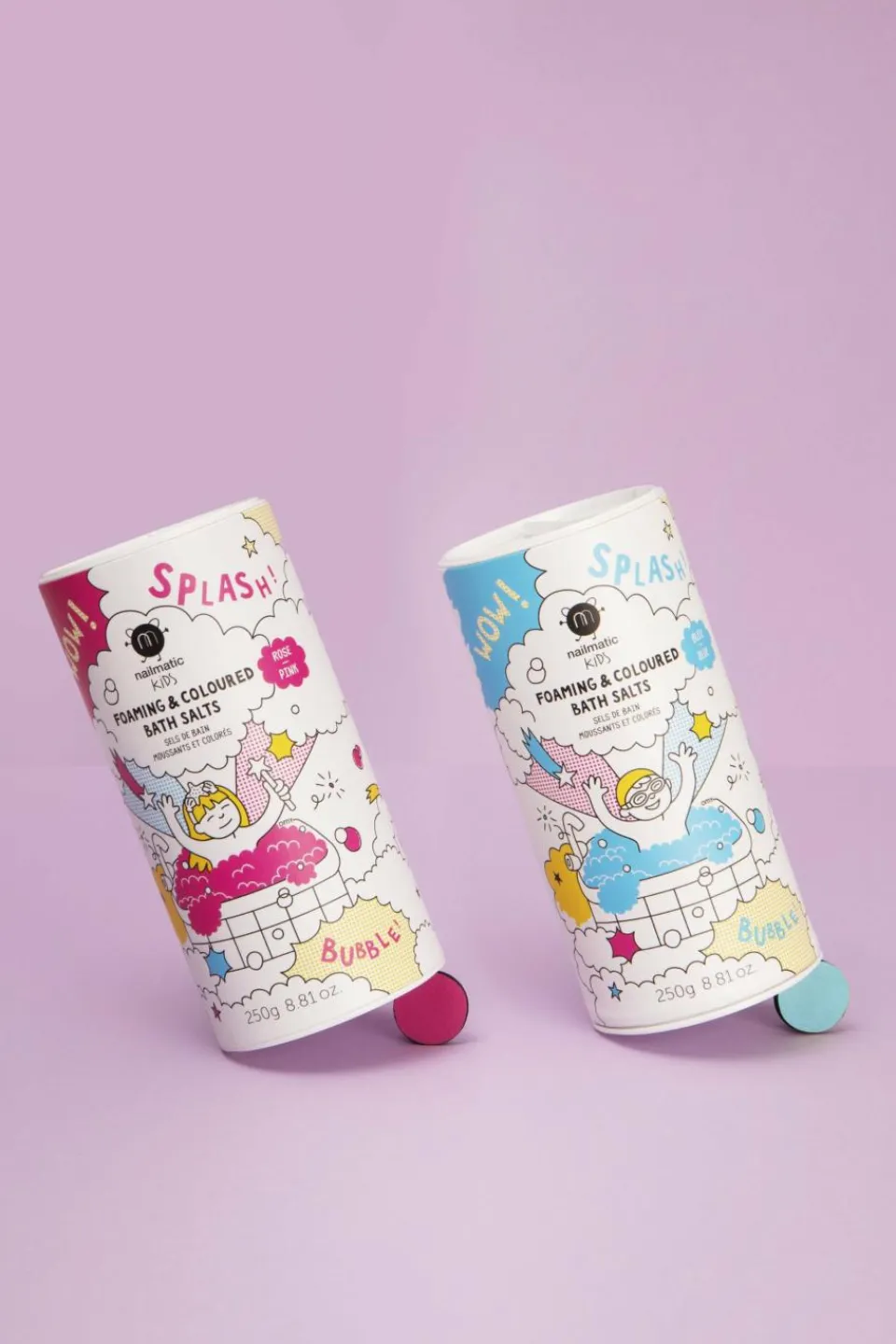 Au contact de l’eau, ces sels de bain moussent. Ils colorent l’eau en bleu et dégagent un doux parfum de fruits rouges.