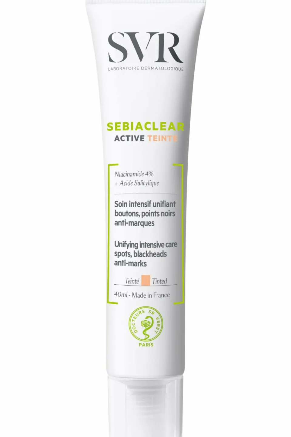 La formule concentrée de SEBIACLEAR Active Teinte permet d’éliminer les boutons, points noirs et pores dilatés en un temps record, mais également de les camoufler immédiatement et durablement grâce à des pigments minéraux micronisés.
