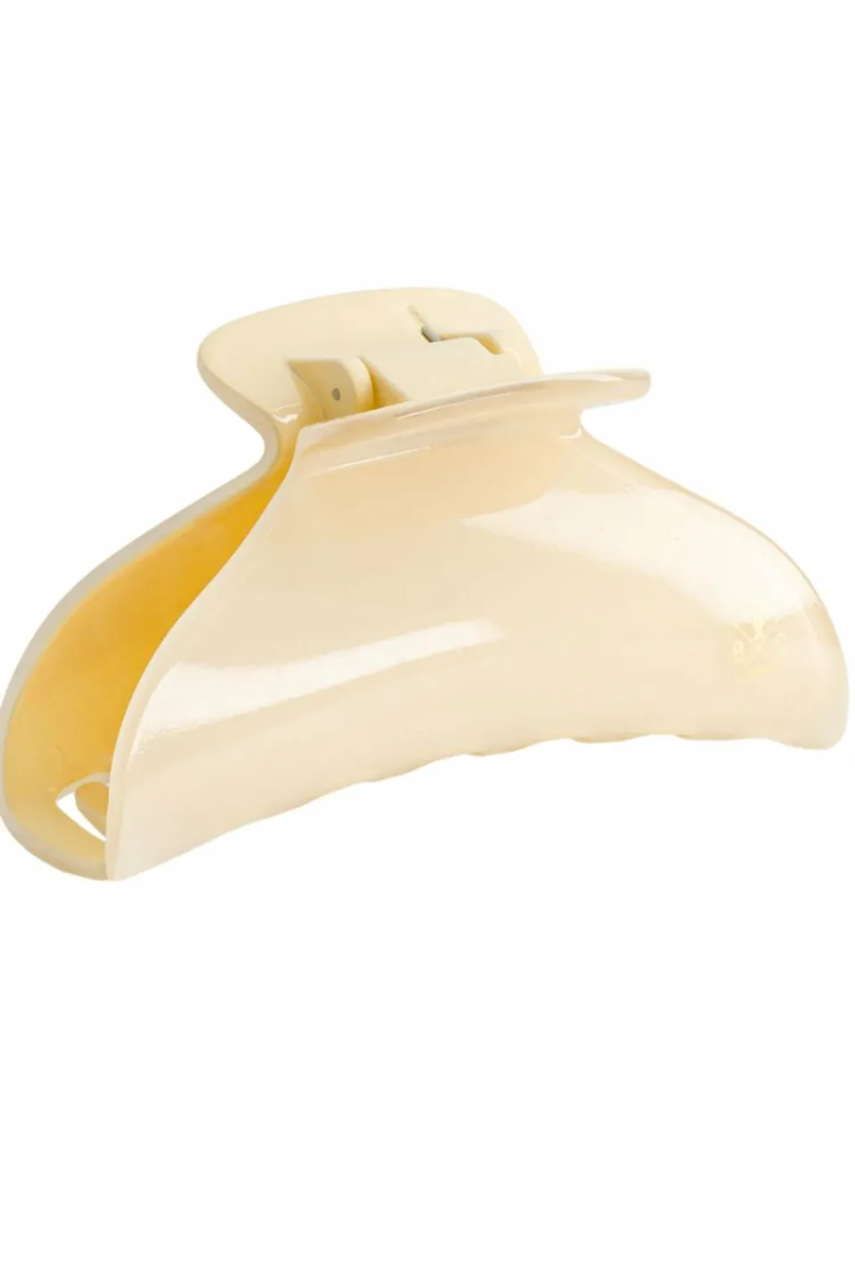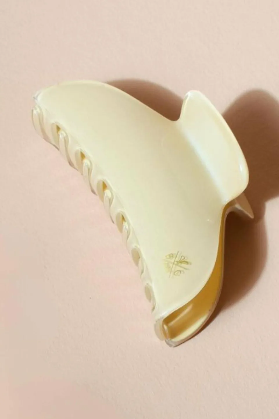 Avec son élégant jeu de transparence, la grande pince opaline ivoire sublime toutes les natures et toutes les couleurs de cheveux.