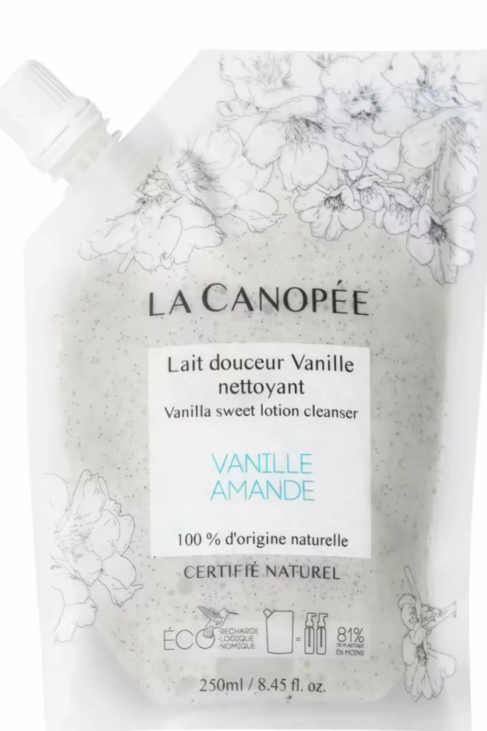 Ce lait gourmand aux graines de vanille et à l’amande douce est un nettoyant cocooning pour votre peau.