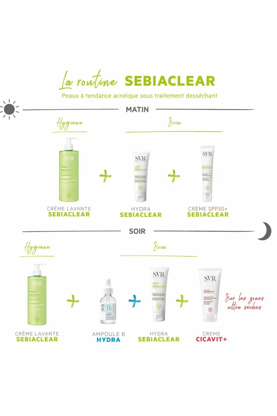 Appliquer matin et/ou soir sur une peau nettoyée préalablement avec SEBIACLEAR Crème Lavante.