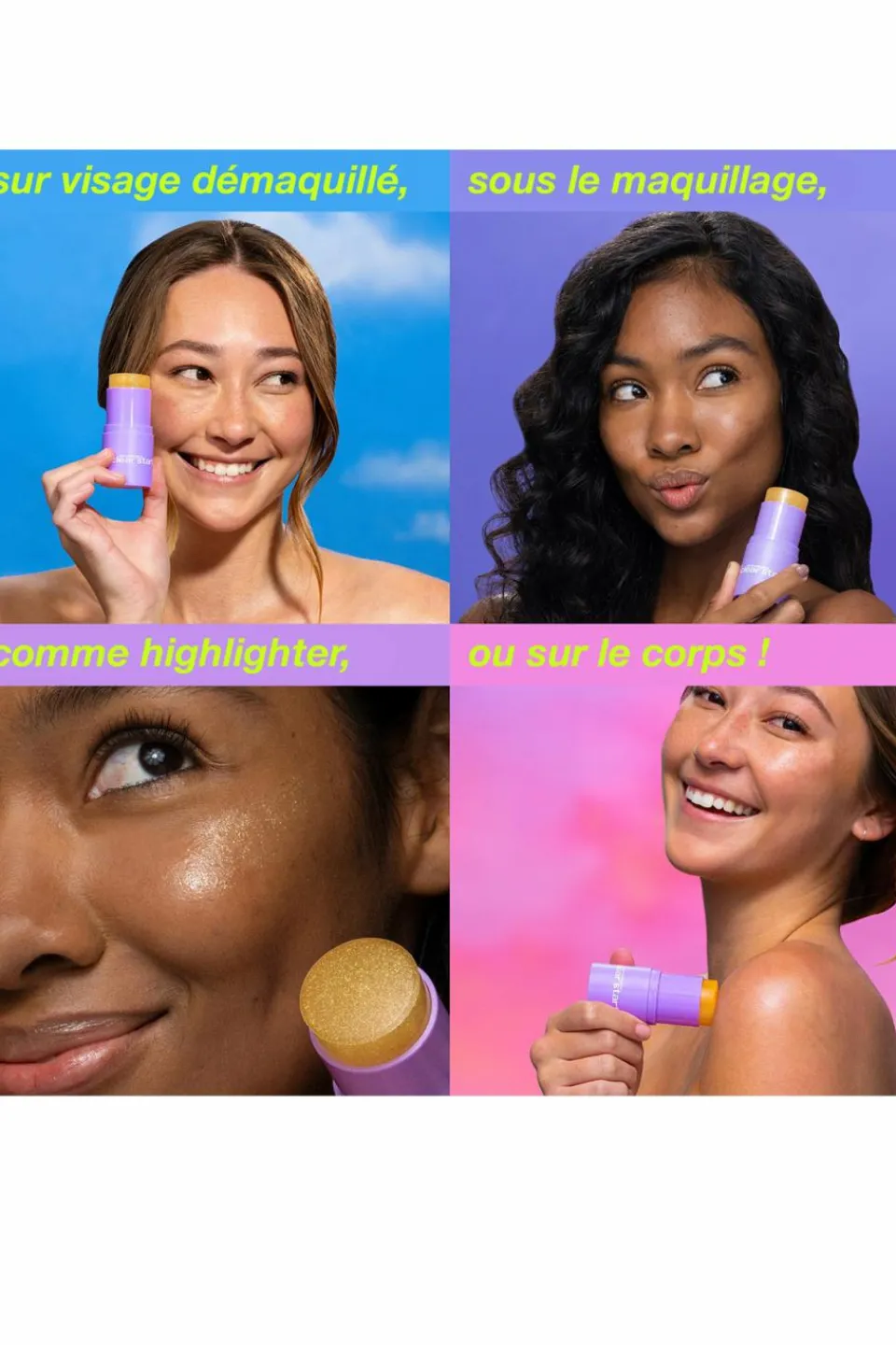 Découvre golden hour hydrating spf 30 stick, un stick solaire nomade à la protection UV large spectre spf 30, non-comédogène, qui aide à garder des pores désobstrués, tout en hydratant la peau et en lui apportant un glow digne de la golden hour, en toute circonstance. A appliquer sur le visage ou le corps.