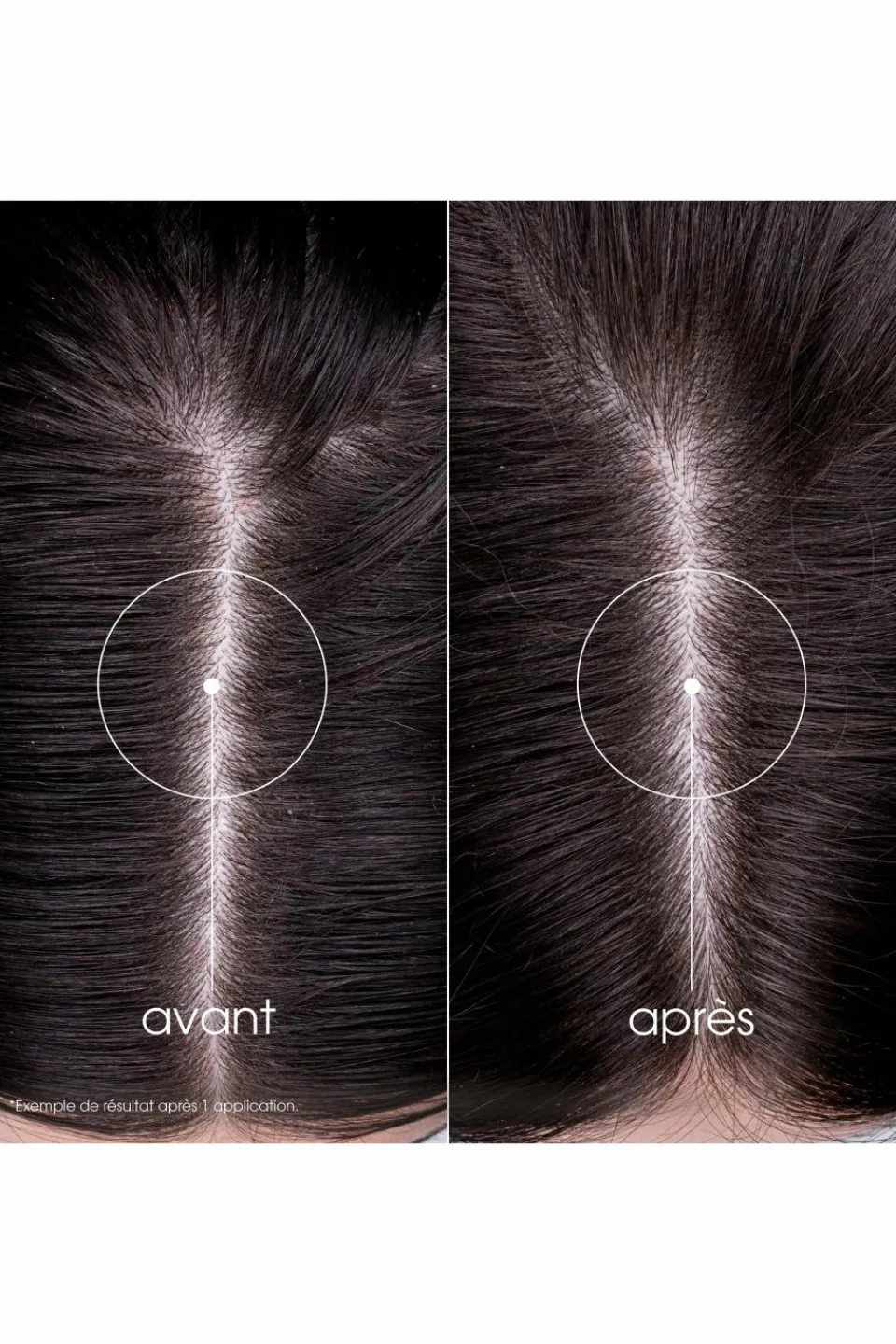 – Stimule : le massage à l’application réactive la microcirculation pour stimuler le bulbe et aider à favoriser la pousse des cheveux.