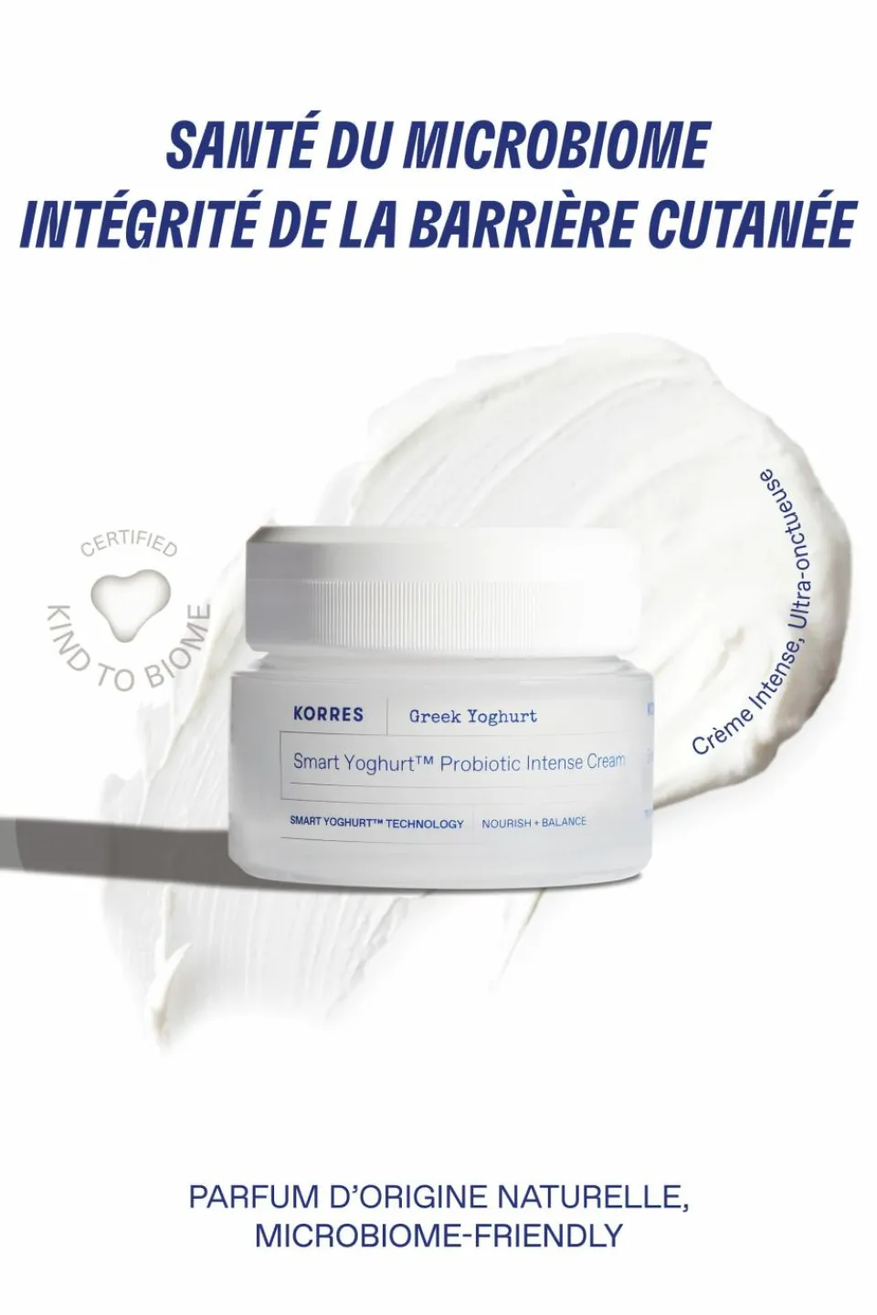 Crème intense boostée par la Technologie Smart yoghurt™ rééquilibre le microbiome et renforce la barrière cutanée. 100% Peau nourrie, apaisée, équilibrée*