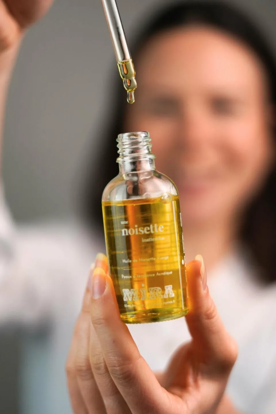 Pour le visage, quelques gouttes d’huile végétale de noisette le soir suffisent pour empêcher la déshydratation de la peau. Utilisez-la en masque pour purifier votre peau !