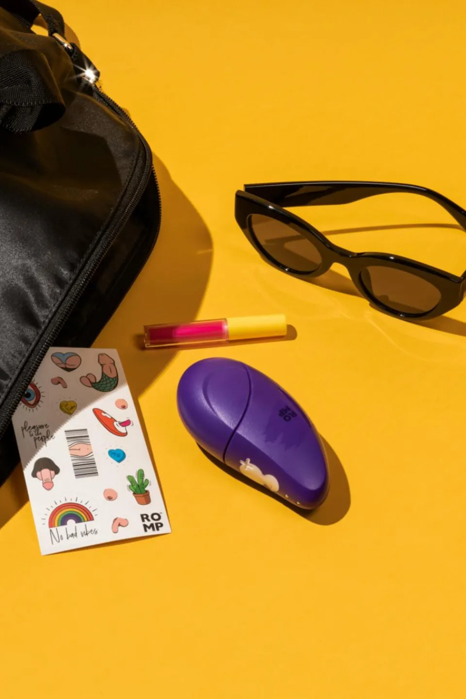 Retirez la housse de protection et maintenez le bouton (+) enfoncé pendant 2 secondes pour allumer ROMP Free. Trouvez votre clito. Montrez-lui le monde ! Appliquez un lubrifiant à base d’eau sur la tête de stimulation et sur votre clitoris.