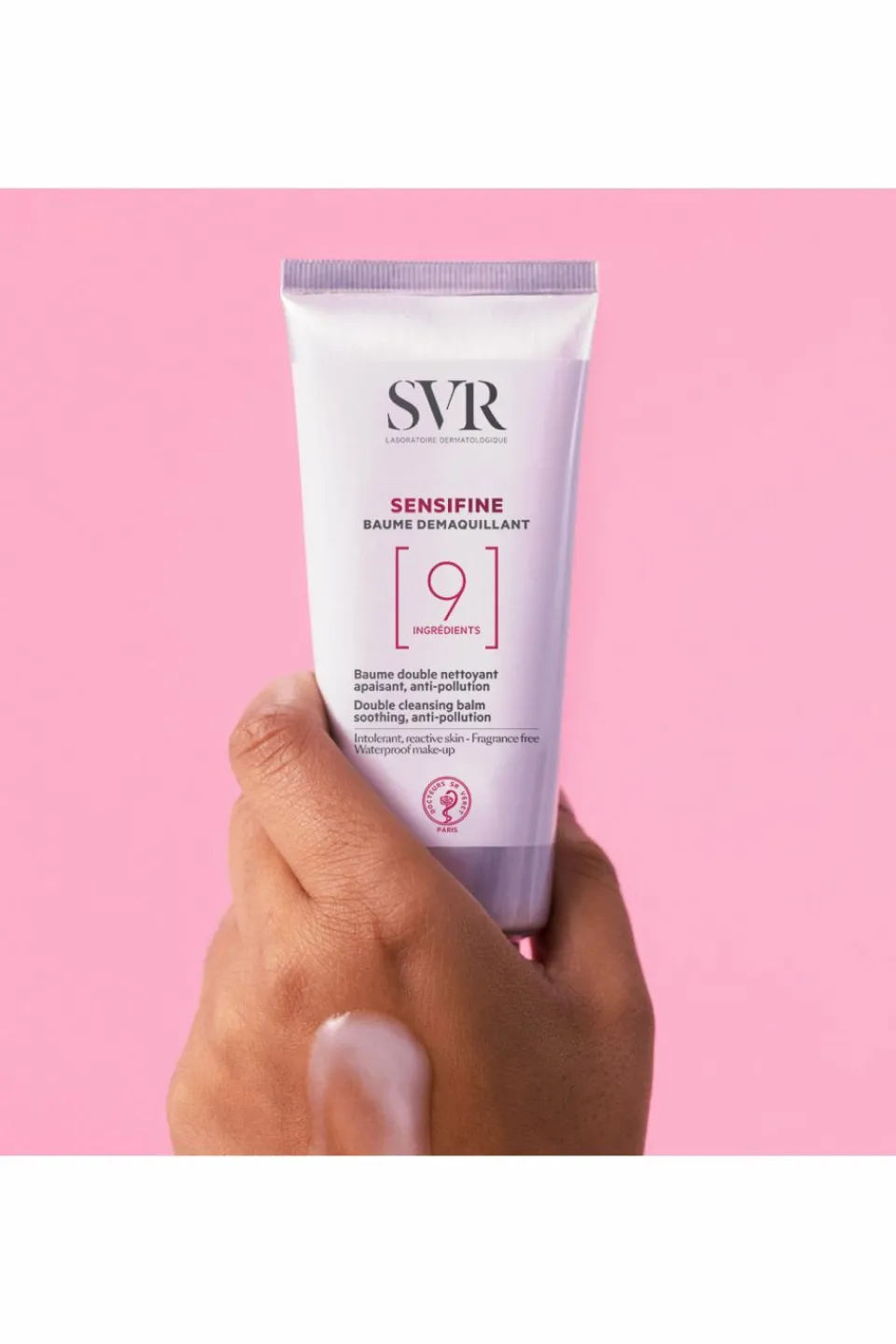 SENSIFINE Baume Démaquillant, véritable soin démaquillant, ce baume en huile révolutionne l’étape du nettoyage. Formulé avec seulement 9 ingrédients il offre aux peaux sensibles et réactives l’efficacité du double nettoyage, qui permet de réduire les irritations induites par le quotidien (pollution, maquillage). Sa texture baume en huile à l’odeur naturelle de coco enveloppe la peau pour démaquiller en profondeur et dissoudre intégralement le maquillage waterproof. Au contact de l’eau, l’émulsion lactée élimine sans difficultés les impuretés urbaines et les particules de pollution les plus coriaces et laisse un film hydratant protecteur non gras. La peau est propre, apaisée et hydratée.