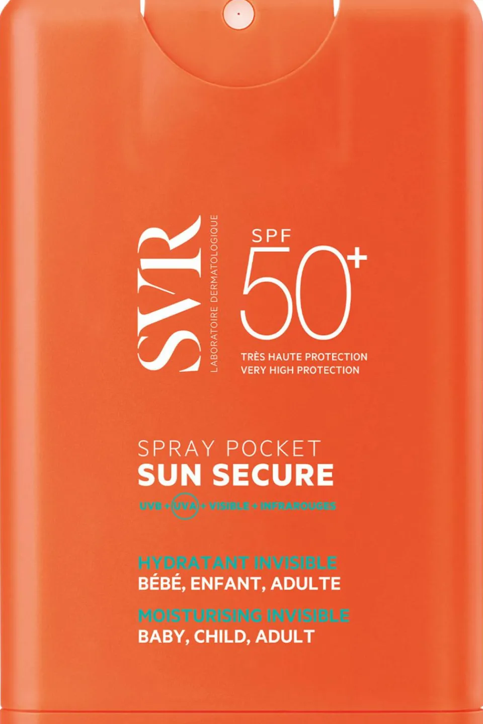 SUN SECURE Spray pocket SPF50+, une très haute protection solaire respectueuse de l’environnement marin dans un tout nouveau format de poche encore moins encombrant qu’un téléphone.
