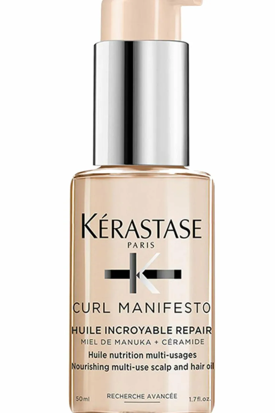 L’Huile Incroyable Repair de la gamme Curl Manifesto de Kérastase vient révéler et sublimer les cheveux frisés et crépus. À différentes étapes de votre routine capillaire, en soin quotidien ou en traitement hydratant la veille du shampoing, elle vient nourrir la fibre capillaire en profondeur et hydrater délicatement le cuir chevelu. Grâce aux huiles végétales qui la composent, les boucles sont douces, démêlées et ultra-brillantes.