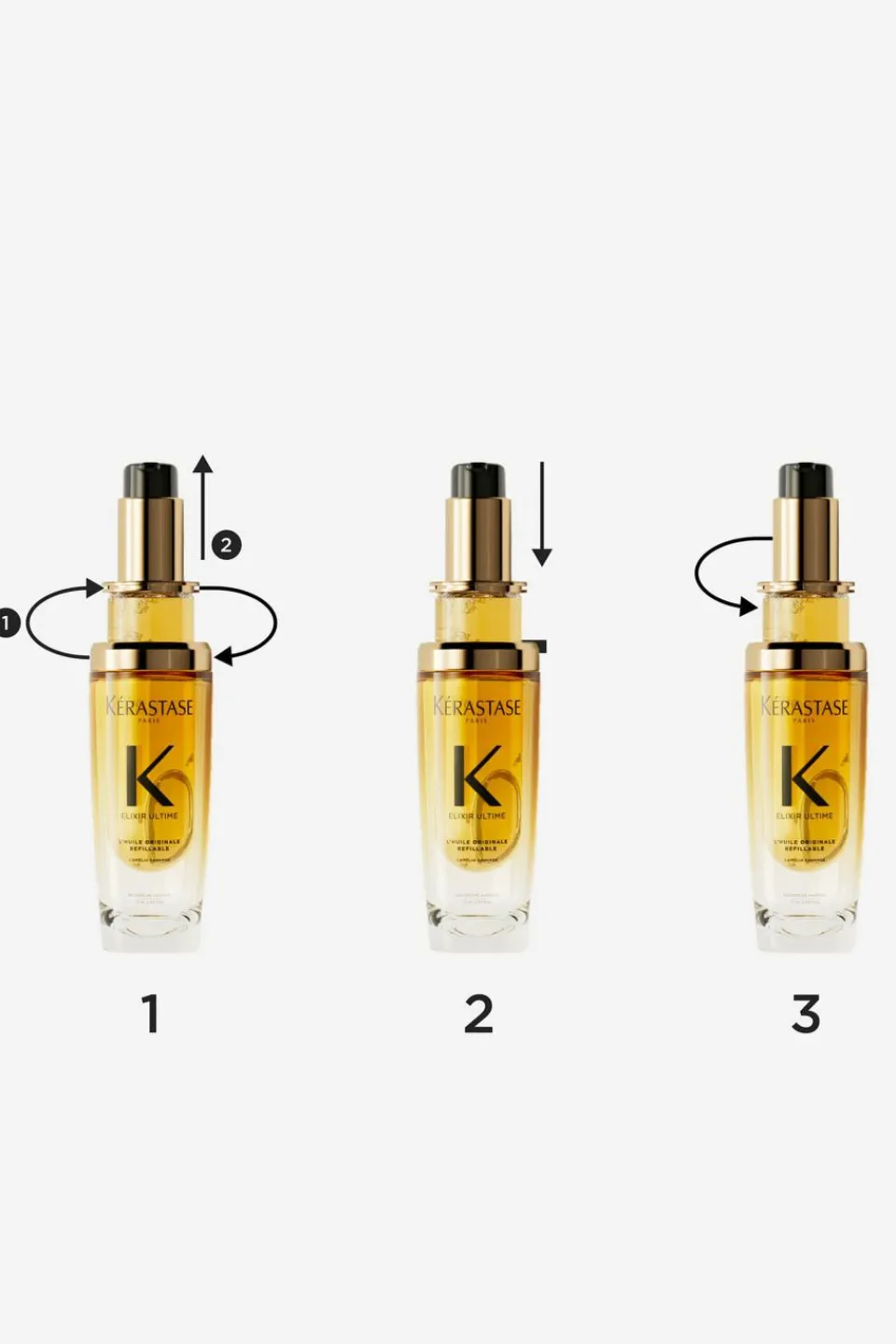 L’Huile Originale Elixir Ultime peut être utilisée comme bain d’huile avant votre shampoing, avant votre brushing grâce à sa thermoprotection 230°C **, ainsi que pour les finitions au moment du coiffage et les retouches au cours de la journée, afin de rendre les cheveux plus lisses, plus brillants et faciles à coiffer.. Elle peut être utilisée en complément de toutes les routines Kérastase.