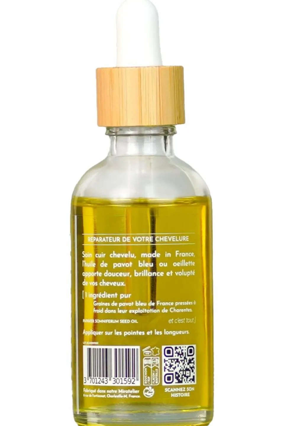 Toujours dans un flacon en verre, de 50ml avec une pipette en bambou.
