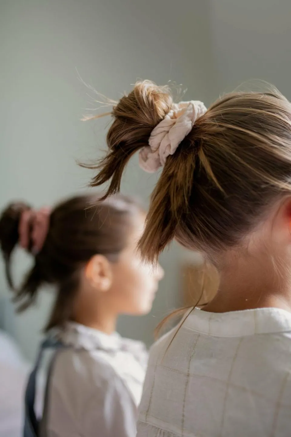 Ce lot de 2 chouchous en gaze de coton est composé d’un chouchou écru et d’un chouchou terracotta.