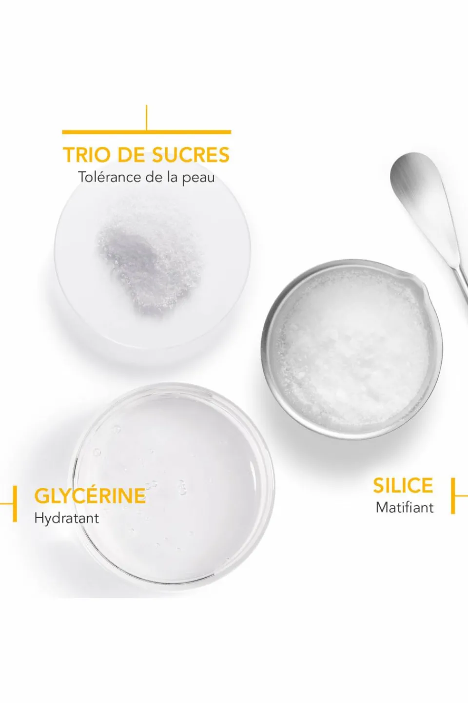 Texture confortable et hydratante. Incolore à l’application. Sans effet gras au cours de la journée. Fini sec.