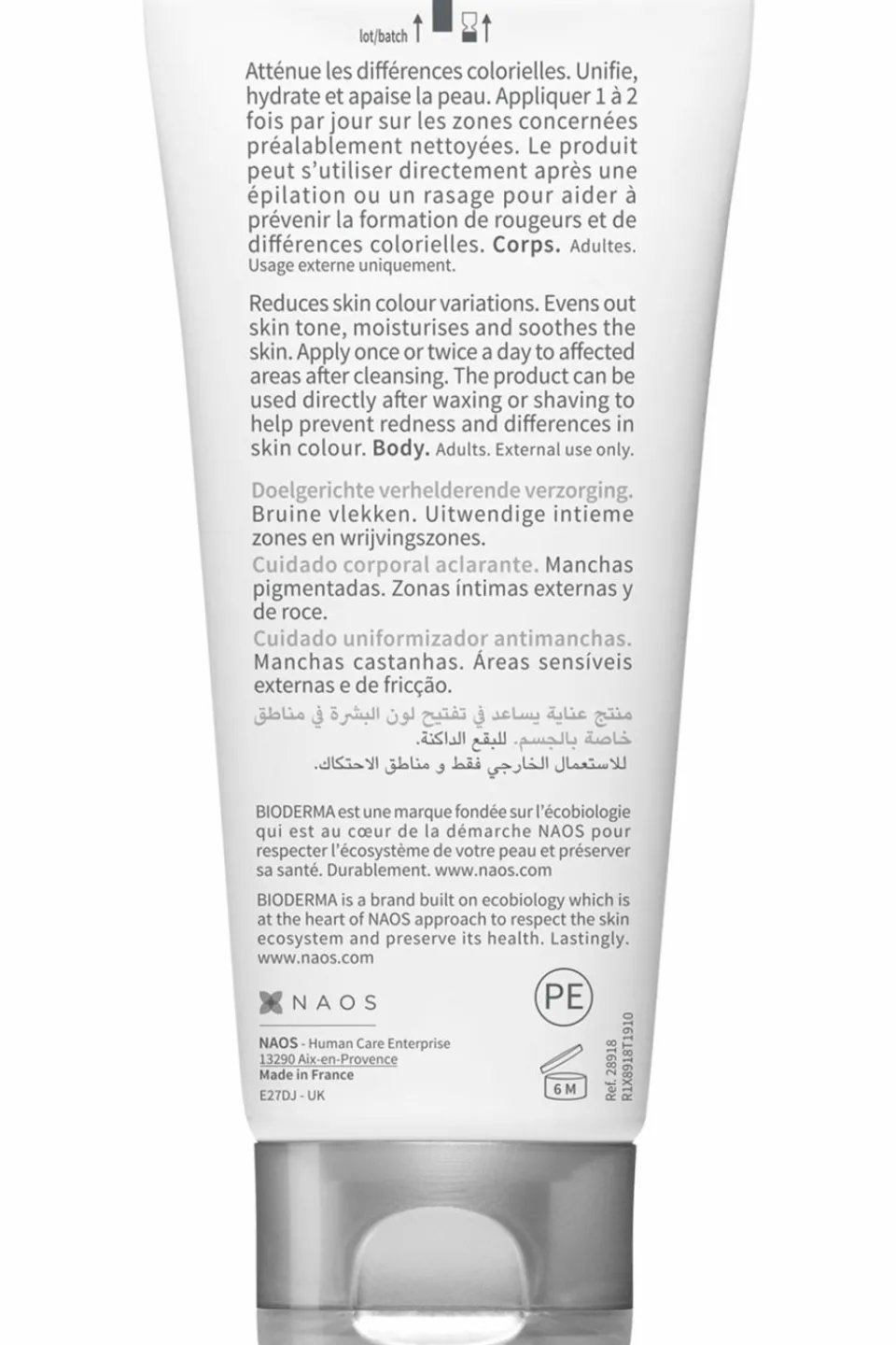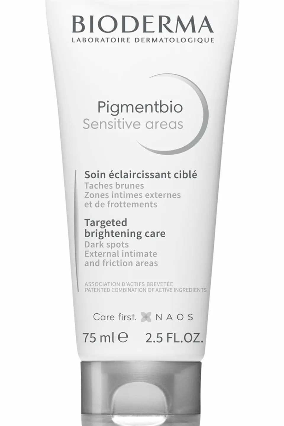 Certaines zones du corps peuvent être plus pigmentées que d’autres, elles apparaissent plus sombres. À l’origine de ces défauts de coloration de la peau : les frottements avec les vêtements, les épilations, la réactivité cutanée. Pigmentbio Sensitive areas (Zones sensibles) éclaircit et unifie les zones de frottements (genoux, coudes, aisselles, cuisses, aine) et les zones intimes externes. Ce soin apaise la peau et aide à prévenir les rougeurs responsables des différences colorielles cutanées. L’association d’actifs brevetée régule les mécanismes biologiques à l’origine des taches brunes pour un effet éclaircissant et préventif optimal. Texture riche non collante, non grasse. Très bonne tolérance. Testé sous contrôle gynécologique et dermatologique.