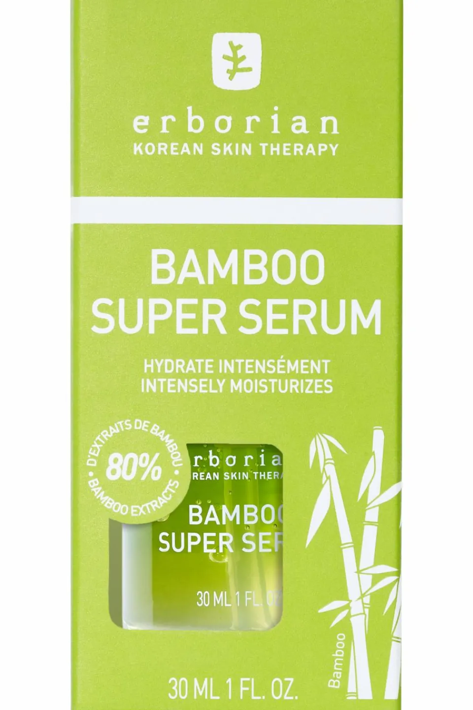 BAMBOO SUPER SERUM, enrichi en Acide Hyaluronique, recharge intensément et durablement la peau en eau et lui procure une sensation de confort tout au long de la journée. La promesse d’une peau comme repulpée d’hydratation, d’un teint frais et radieux, dans une texture étonnante qui se transforme instantanément en eau au contact de la peau !