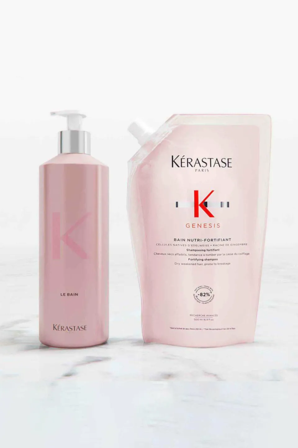 Le Bain Nutri-Fortifiant de la gamme Genesis de Kérastase est conçu pour les cheveux épais ou secs qui sont fragilisés et ont tendance à tomber. Ce shampoing anti-chute de cheveux lave en douceur le cuir chevelu, afin d’éliminer l’excès de sébum et les impuretés qui peuvent étouffer les racines et affaiblir la fibre capillaire.