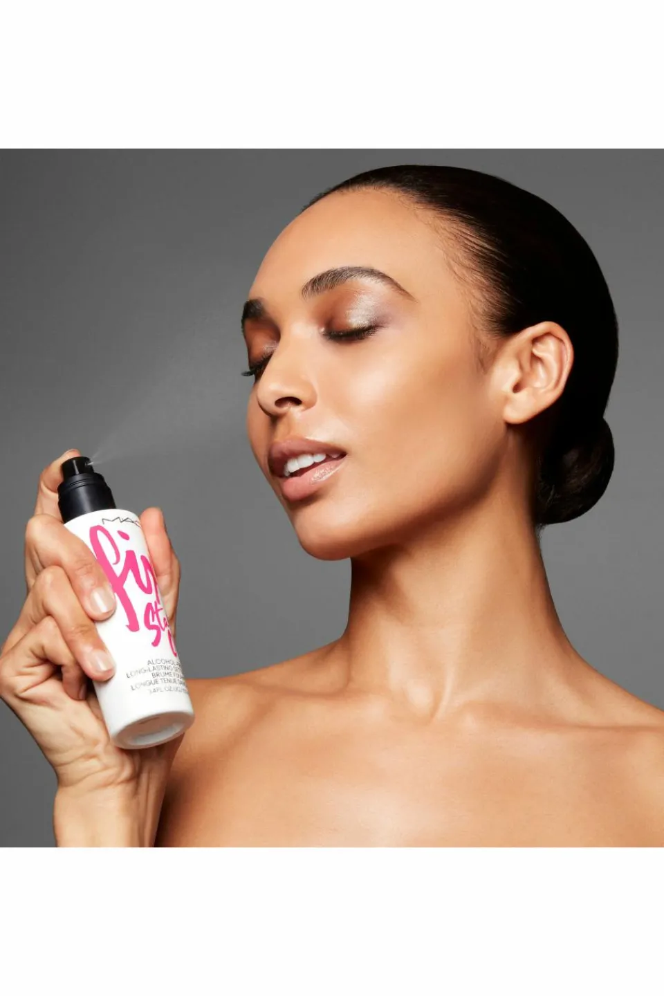 Spray fixateur hydratant sans alcool.Tenue de 16 heures. Protège votre peau contre la pollution et la lumière bleue.