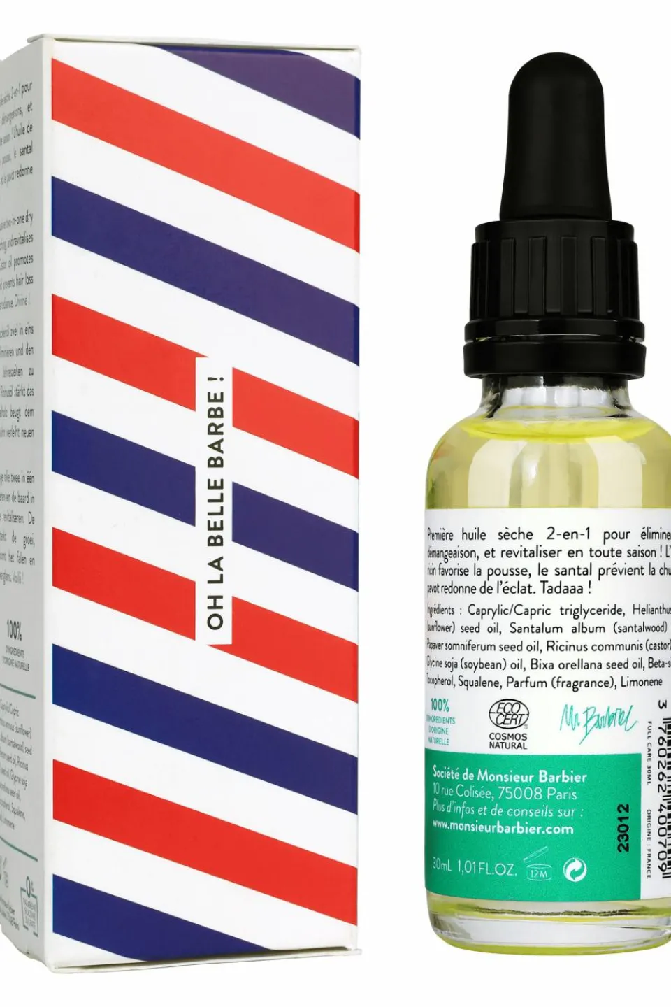Toute première huile pour barbe certifiée ECOCERT Cosmos Nat. Certifié ONE VOICE (aucun test sur des animaux, aucun dérivé animal).