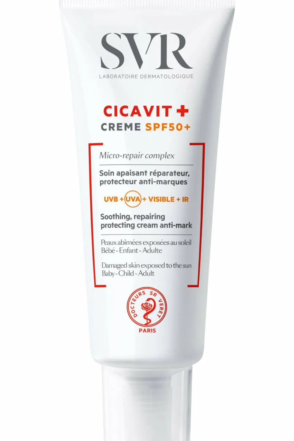 CICAVIT+ Crème SPF50+ garantit un été sans marques ! Sa texture invisible fusionne avec la peau pour apaiser intensément et accélérer la réparation cutanée des peaux abimées et irritées de toute la famille. Formulée avec une technologie filtrante anti-UVA/UVB et un complexe anti-oxydant anti-lumière visible et infrarouges, la crème cible tous les types de rayons pour limiter les risques de marques rouges et brunes.