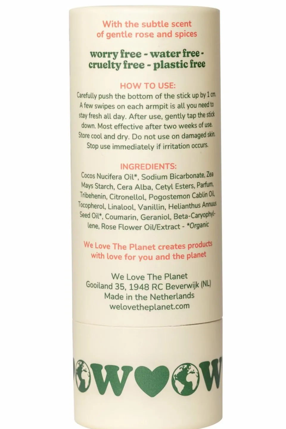 Ce déodorant 100% naturel certifié NCS a un doux parfum de rose et d’herbes douces.