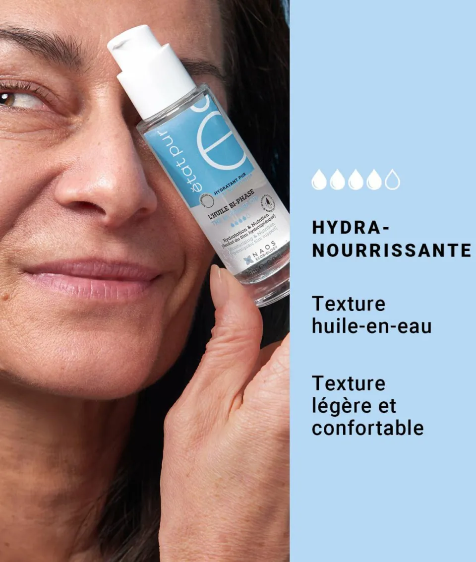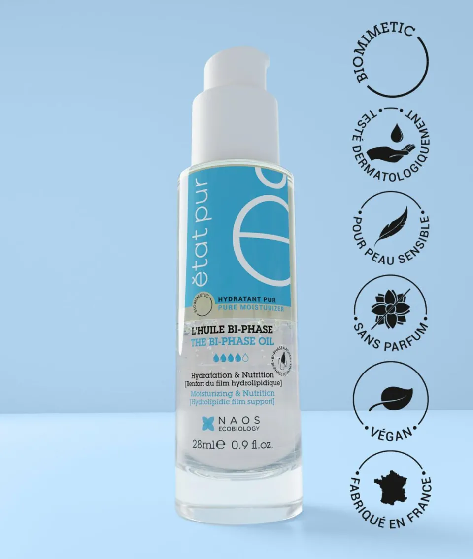 L’huile bi-phase est un soin hydratant biomimétique inspiré par la peau pour l’hydrater intensément et durablement. Sa texture légère et nutritive pénètre instantanément dans la peau et laisse un film confortable et non gras en surface.