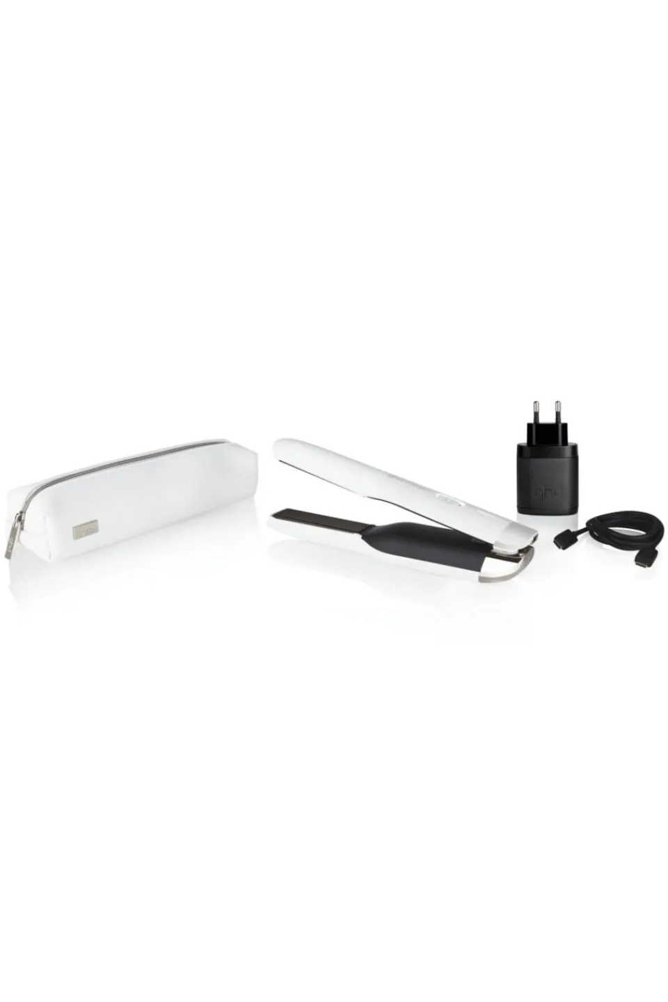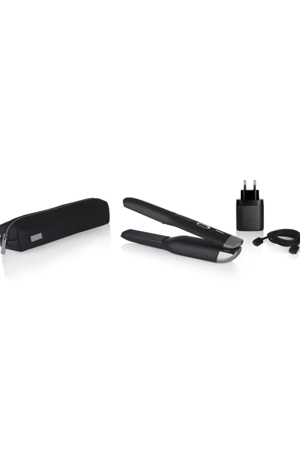 Dans ce coffret : le styler® ghd unpluggled, son chargeur USB-C et son étui compact et thermorésistant pour protéger votre styler® lors de vos déplacements.