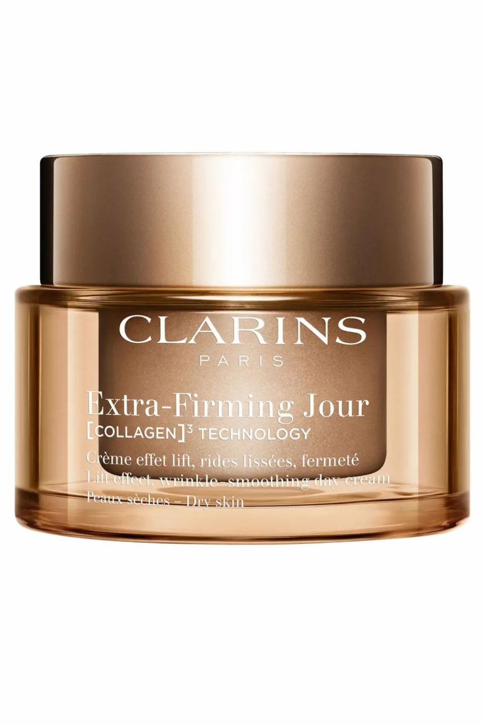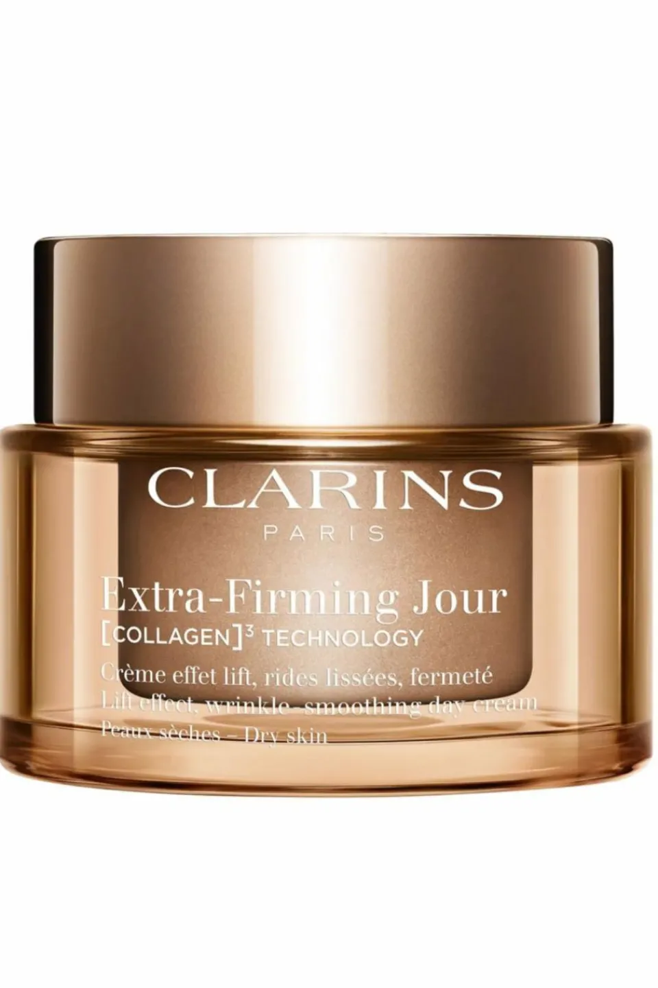 Clarins crée un soin fermeté dont les puissants actifs aident à booster les réserves en collagène* pour une peau plus ferme en 7 jours**. Sa formule enrichie de la technologie exclusive*** [COLLAGEN]3 TECHNOLOGY cible la quantité, la qualité et la structure du collagène*.