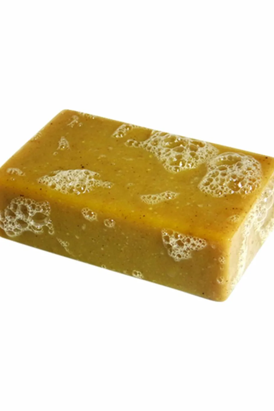 Sodium olivate*, Sodium cocoate*, Sodium shea butterate*, Aqua, Glycerin, Sodium sunflowerseedate*, Ricinus communis* (castor oil), Citrus aurantium dulcis peel oil, Citrus aurantium amara leaf/twig oil, Turmeric extract*, limonene**, linalol**, geraniol**, citral**, farnesol**, citronellol**, neral**, geranial**.