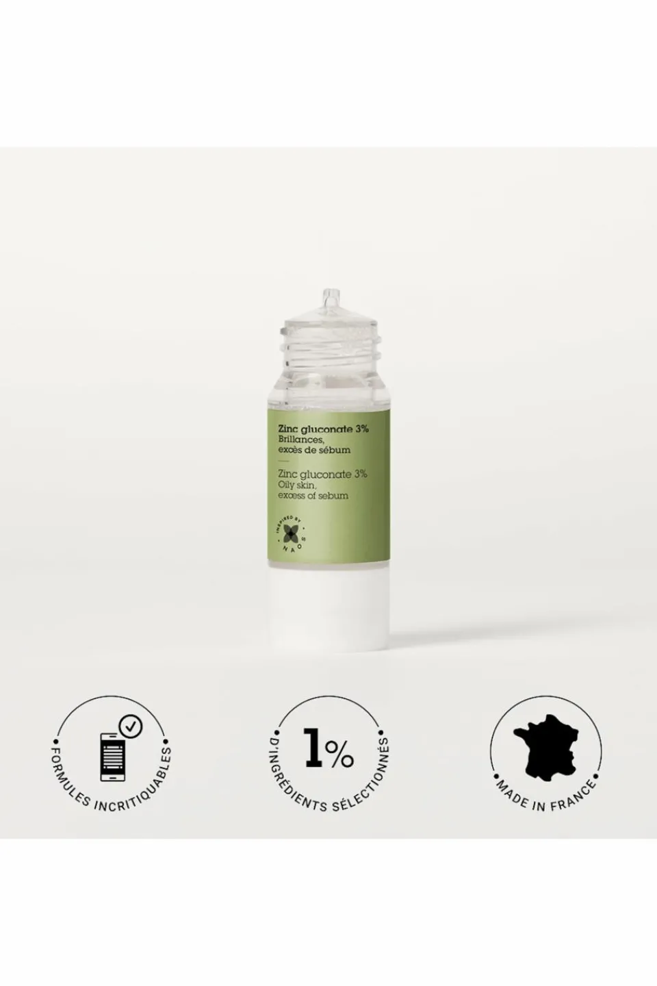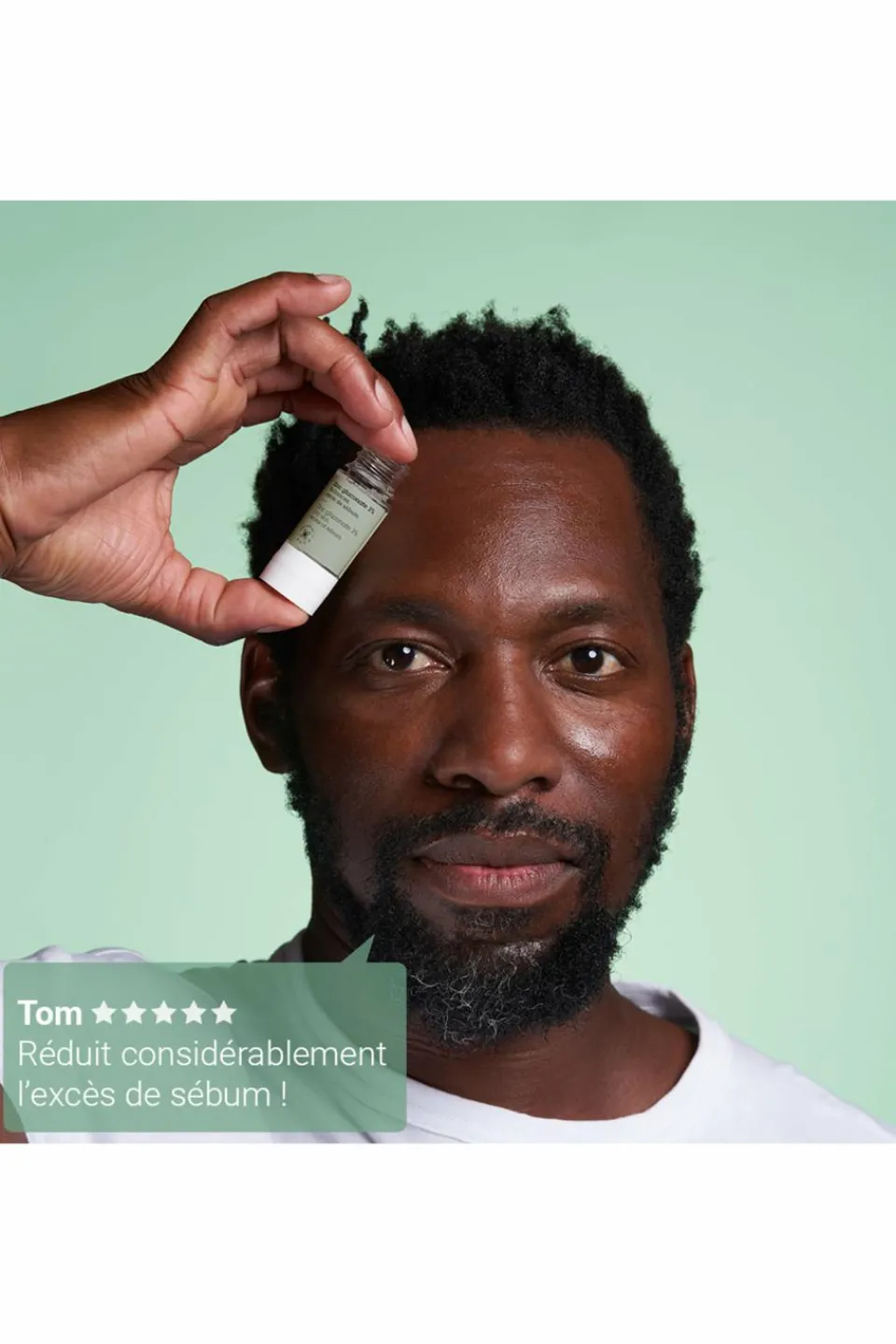 Appuyer à l’arrière du flacon et prélever 4 gouttes. avant de les appliquer sur l’ensemble du visage ou 2 à 3 gouttes pour la zone T.