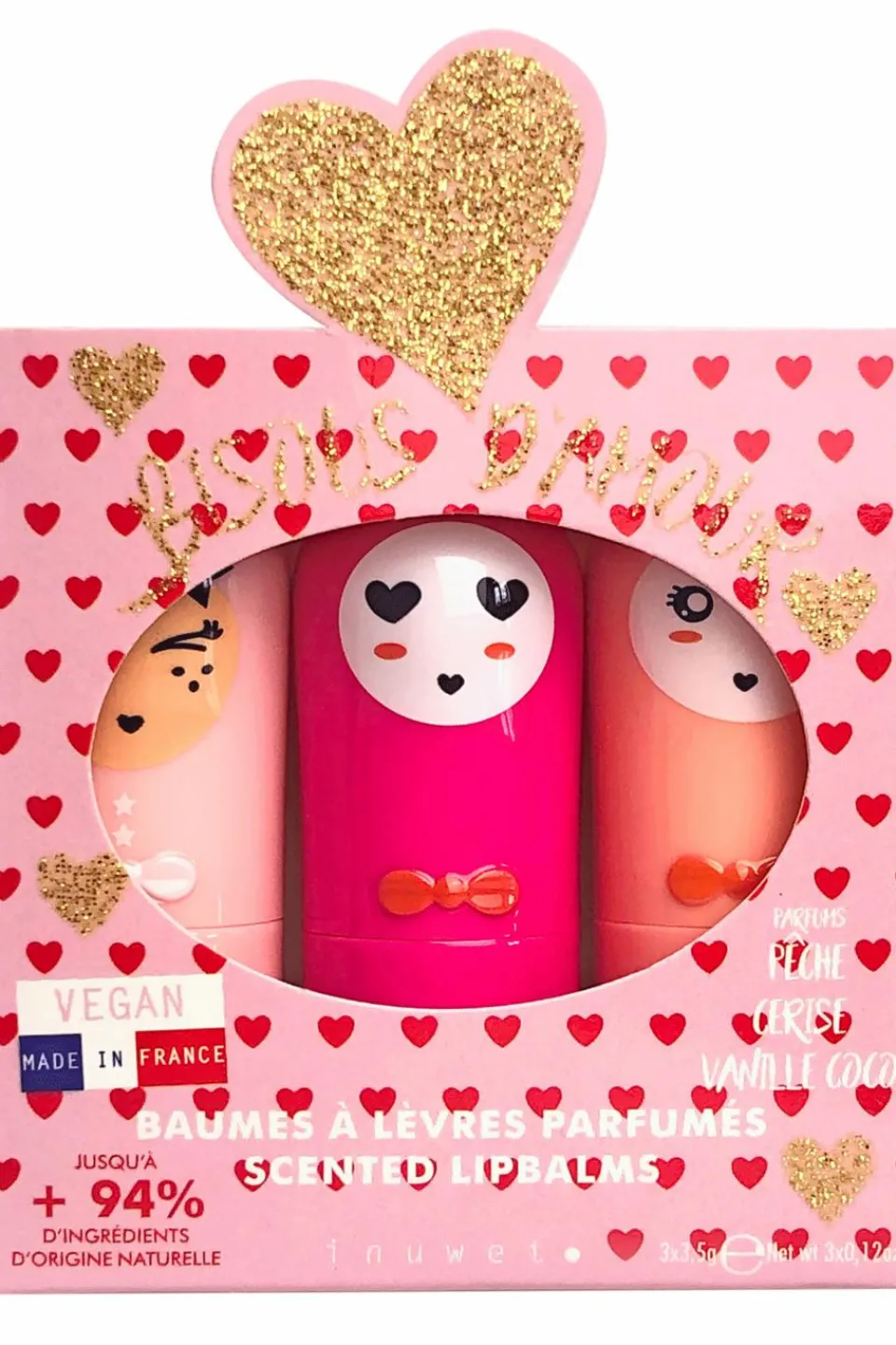 Coffret de 3 baumes à lèvres parfums pêche, cerise et vanille-coco: parfait pour offrir, ou pour soi !