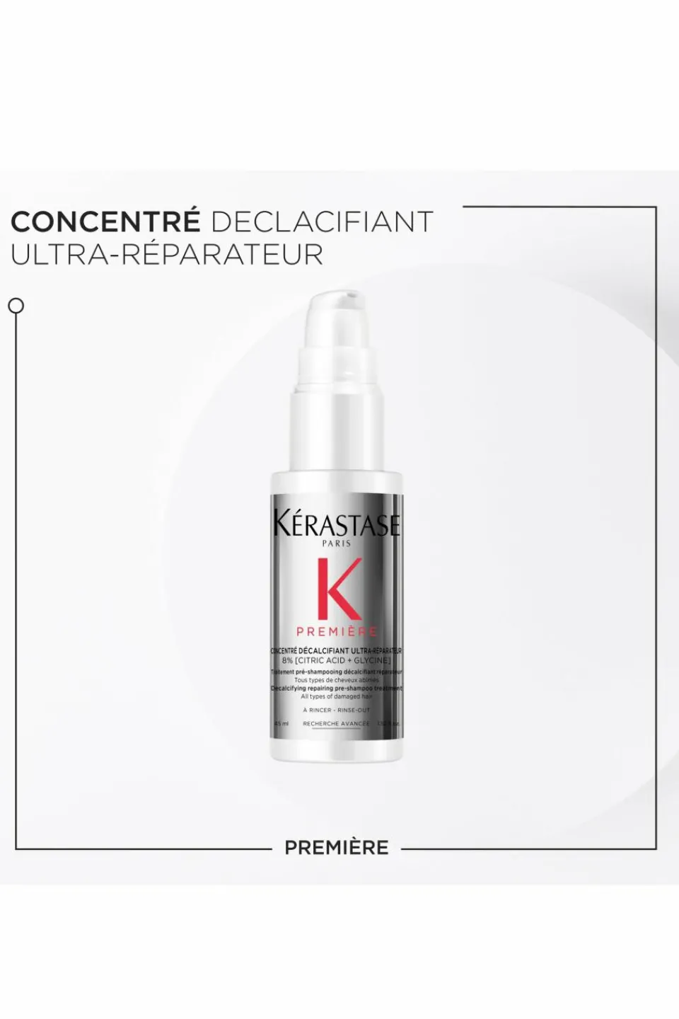Concentré Décalcifiant Ultra-Réparateur 45ml: concentré à 8% en acides réparateurs purs (glycine et acide citrique), ce traitement professionnel a une double action. Il élimine l’overdose de calcium responsable de la casse des cheveux et les répare de l’intérieur vers l’extérieur en reconnectant les ponts internes de la fibre*. Les cheveux sont plus forts, plus sains, plus brillants et en mouvement.