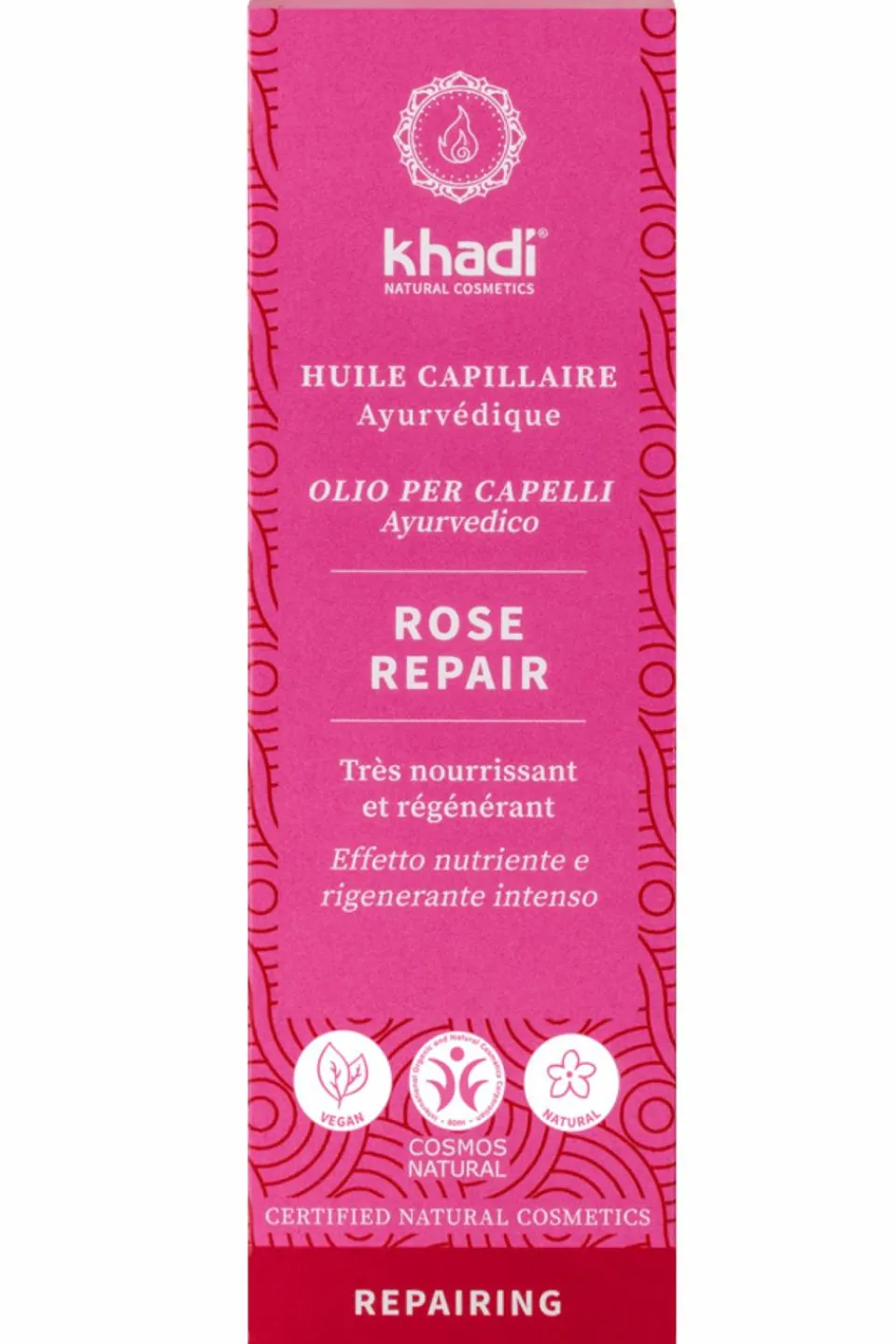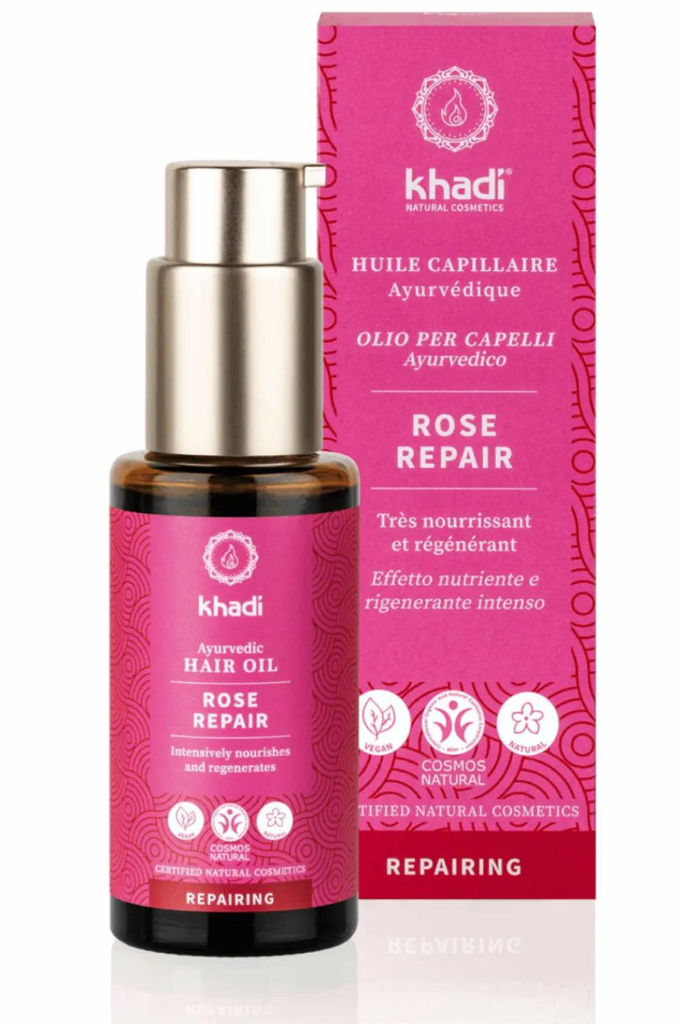 L’huile capillaire Khadi Rose Repair – régénérante et réparatrice, la solution Ayurvédique pour les cheveux secs, endommagés dans leur structure