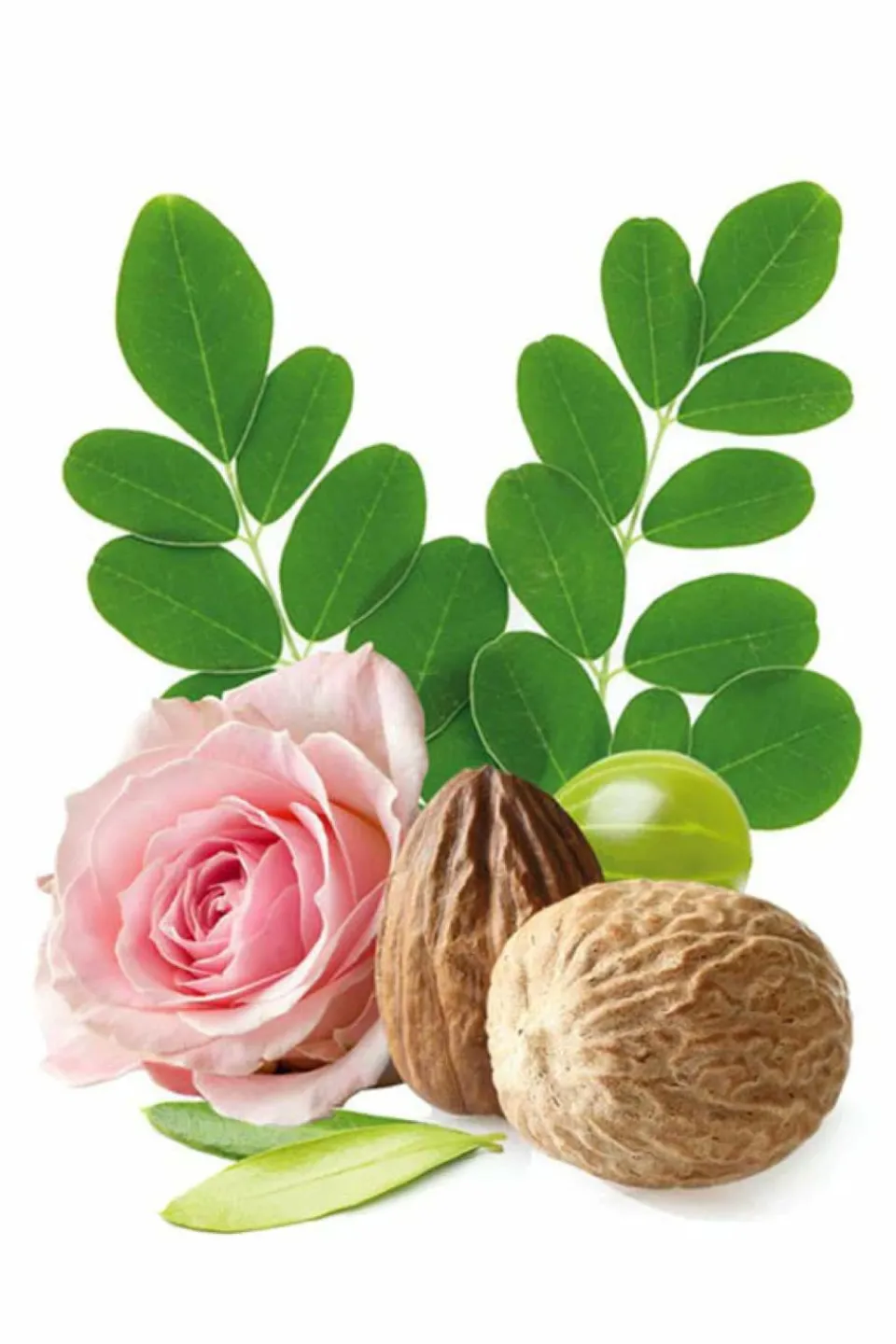 Huile de graines de Sesamum Indicum (Sésame)*, Huile de Cocos Nucifera (Coco), Huile de graines de Ricinus Communis (Ricin), Isoamyle Laurate, Huile de graines de Simmondsia Chinensis (Jojoba), Huile de fruit d’Olea Europaea (Olive), Huile de noyau d’Argania Spinosa (Arganier), Huile de germe de Triticum Vulgare (Blé), Extrait de feuille d’Eclipta Alba (Bhringraj)*, extrait de feuille de Murraya Koenigii (Arbre à curry), Extrait de feuille de Moringa Oleifera (Moringa)*, Extrait de feuille de Centella Asiatica*, Extrait de fruit d’Emblica Officinalis (Amla)*, Extrait de fruit de Terminalia Chebula*(Haritaki), Extrait de fruit de Terminalia Bellirica (Baheda)*, Extrait de feuille de Bacopa Monnieri (Brahmi)*, Extrait de graine de Trigonella Foenum-Gaecum (Fenugrec)*, Extrait de racine de Glycyrrhiza Glabra (Réglisse)*, Extrait de feuille de Lawsonia Inermis (Henné)*, Extrait de feuille d’Indigofera Tinctoria (Indigo)*, Extrait d’écorce de Cedrus Atlantica (Cèdre de l’Atlas), Extrait de racine de Cyperus Scariosus (Cypriol)*, Extrait de fleur de Rosa Damascena (Rose de Damas), Extrait de racine de Ficus Benghalensis (Figuier des banians), Extrait de fleur d’Hibiscus Sabdariffa (Oseille de Guinée)*, Huile de pélargonium Graveolens, Huile de graines de Vitis Vinifera (Vigne), Huile de racine de Vetiveria Zizanoides (Vétiver), Huile de graines d’Azadirachta Indica (Neem)*, Huile de Lavandula Angustifolia (Lavande), Huile de fleur de Cananga Odorata (Ylang-ylang), Huile de feuille de Sanctum Ocimum (Tulsi), Huile de Mentha Piperita (Menthe poivrée), Extrait de fleur d’Arnica Montana (Arnica des montagnes), Extrait de fruit d’Acacia Concinna (Shikakai)*, Extrait de feuille de Thymus Vulgaris (Thym), Citral**, Géraniol**, Linalool**, Citronellol**, Limonène**, Benzyl Salicylate**, Farnesol**, Benzyl Benzoate**, Eugénol**, Isoeugenol**, Coumarin**