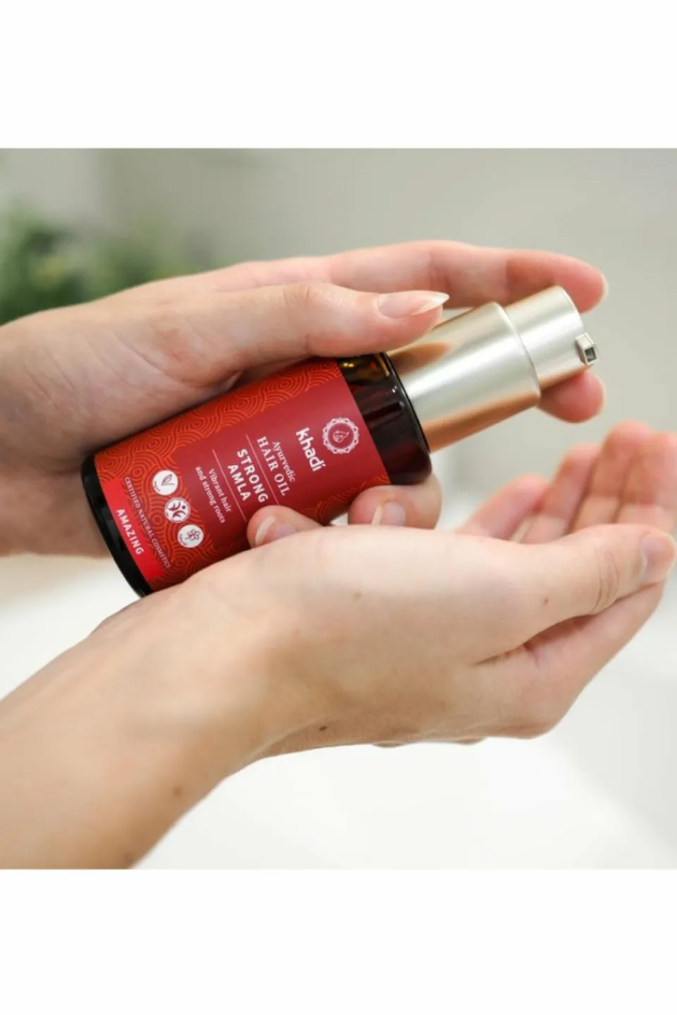 L’Huile pour cheveux et cuir chevelu Khadi Strong Amla – pour des cheveux sains, forts et brillants de la racine à la pointe.