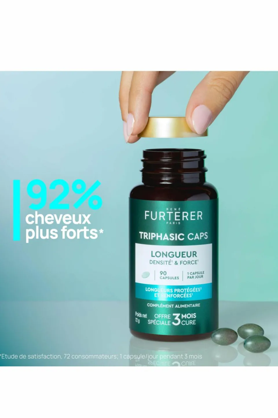 Le complément alimentaire pour cheveux TRIPHASIC CAPS longueur est spécialement conçu pour les cheveux longs.
