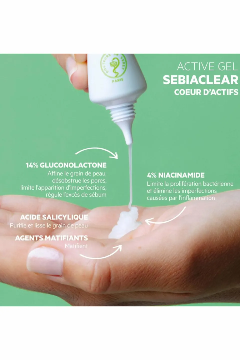 SEBIACLEAR Active Gel, un soin ultra-concentré pour une efficacité prouvée sur les imperfections, même sévères. Dès 7 jours, les boutons et points noirs sont visiblement réduits, les pores sont resserrés, la peau est matifiée. Une formule efficace et clean, sans silicones, avec 90% d’ingrédients d’origine naturelle. Excellente base de maquillage.