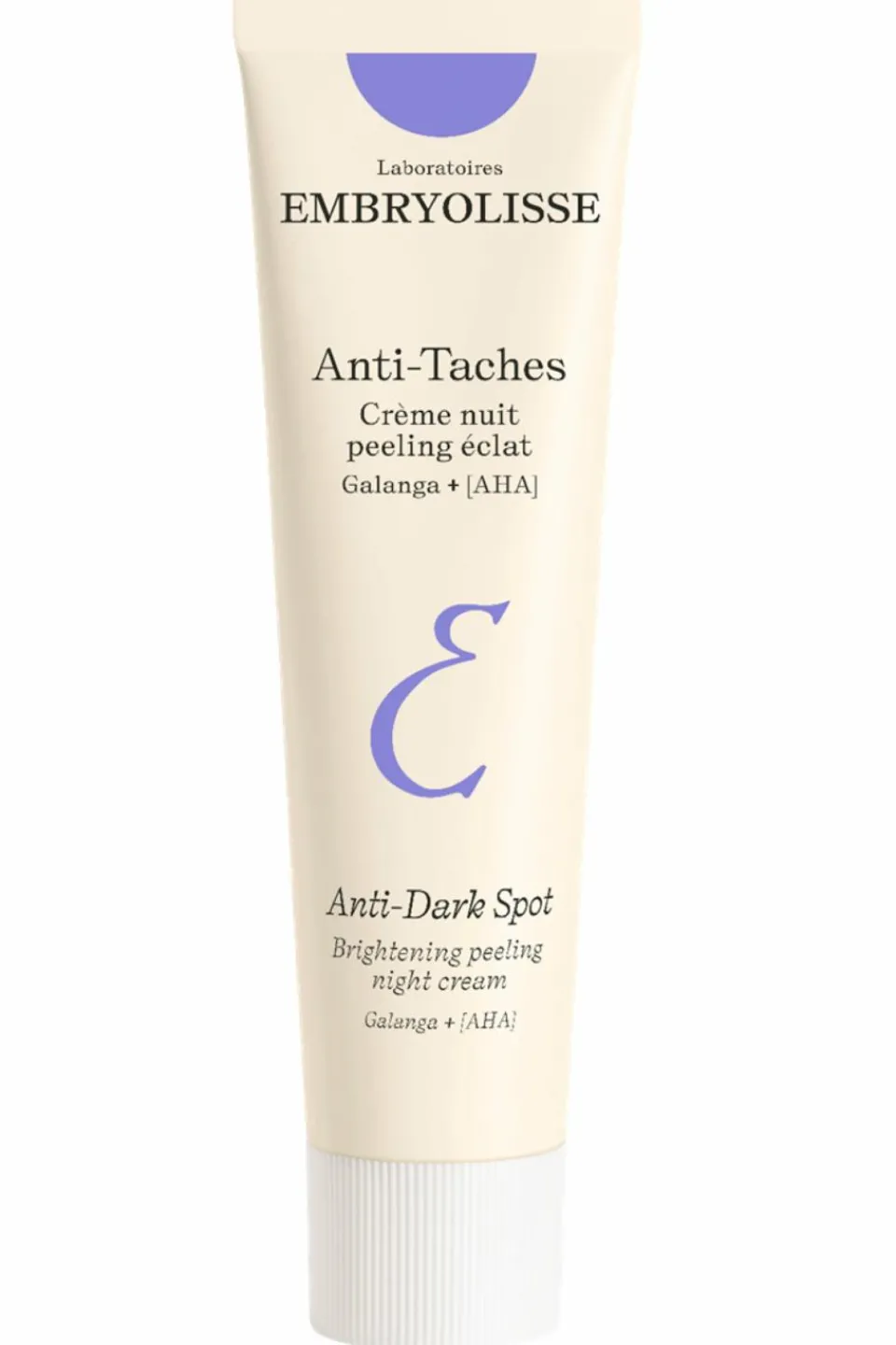 Embryolisse Anti-Taches Crème Nuit Peeling Éclat, formulée avec 96% d’ingrédients d’origine naturelle, agit comme un peeling doux sur tous types de taches (âge, acné, grossesse, soleil), grâce à son concentré d’actifs ciblés et à des AHAs issus du citron caviar.