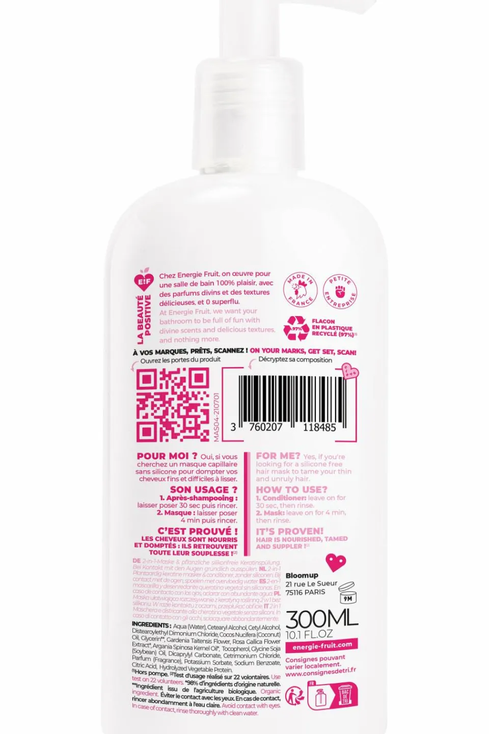 Enrichi à la kératine végétal, ce masque est votre parfait allié pour dompter vos cheveux difficiles à lisser.