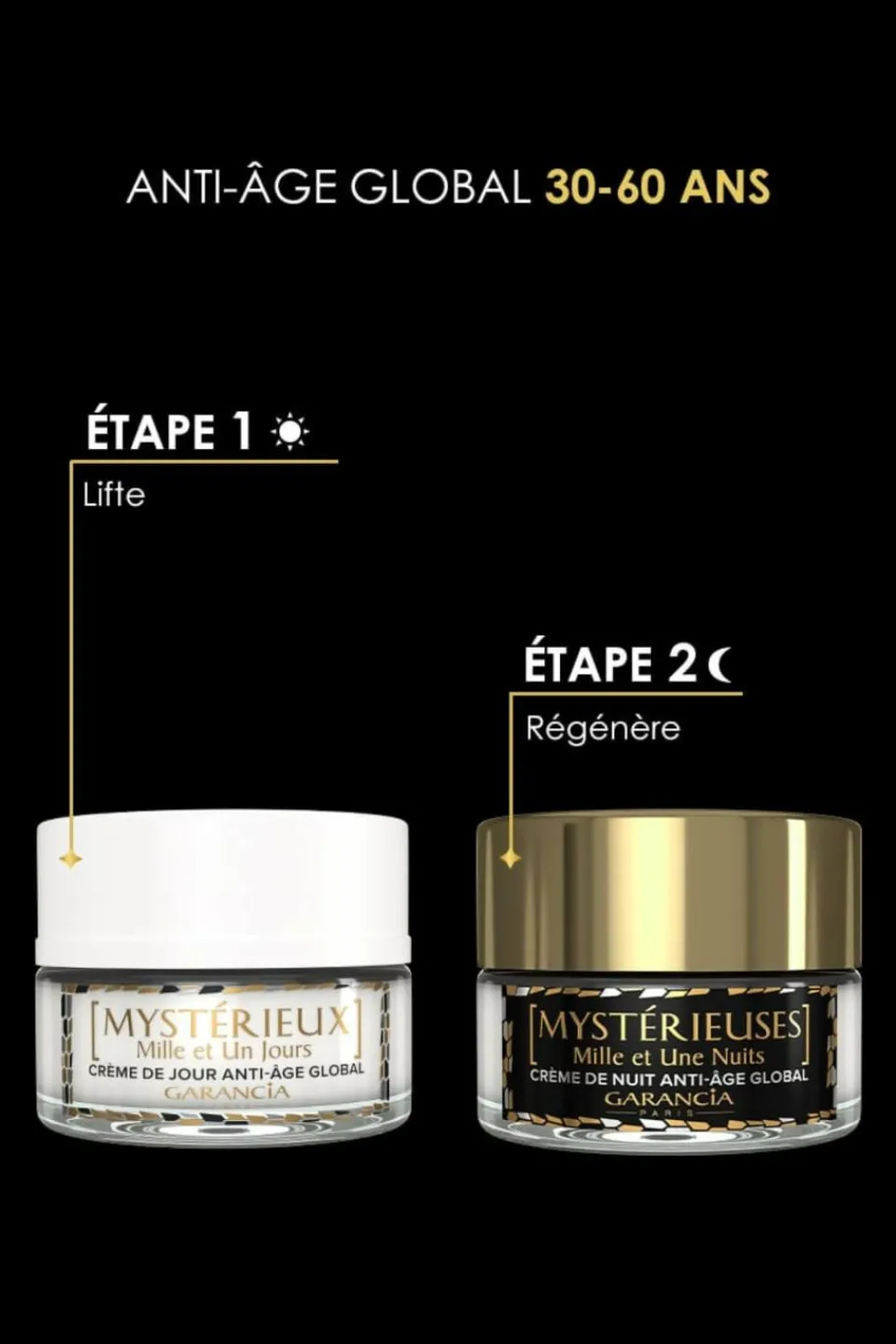 [MYSTÉRIEUSES Mille et Une Nuits] 30 ml- format voyage :La nuit, lorsque le processus de renouvellement cutané est le plus intense, les actifs de ce soin anti-âge global aident à régénérer visiblement, diminuer l’apparence des rides (âge, déshydratation, expression), redensifier et raffermir la peau. [MYSTÉRIEUX Mille et Un Jours] 10 ml- format voyage :