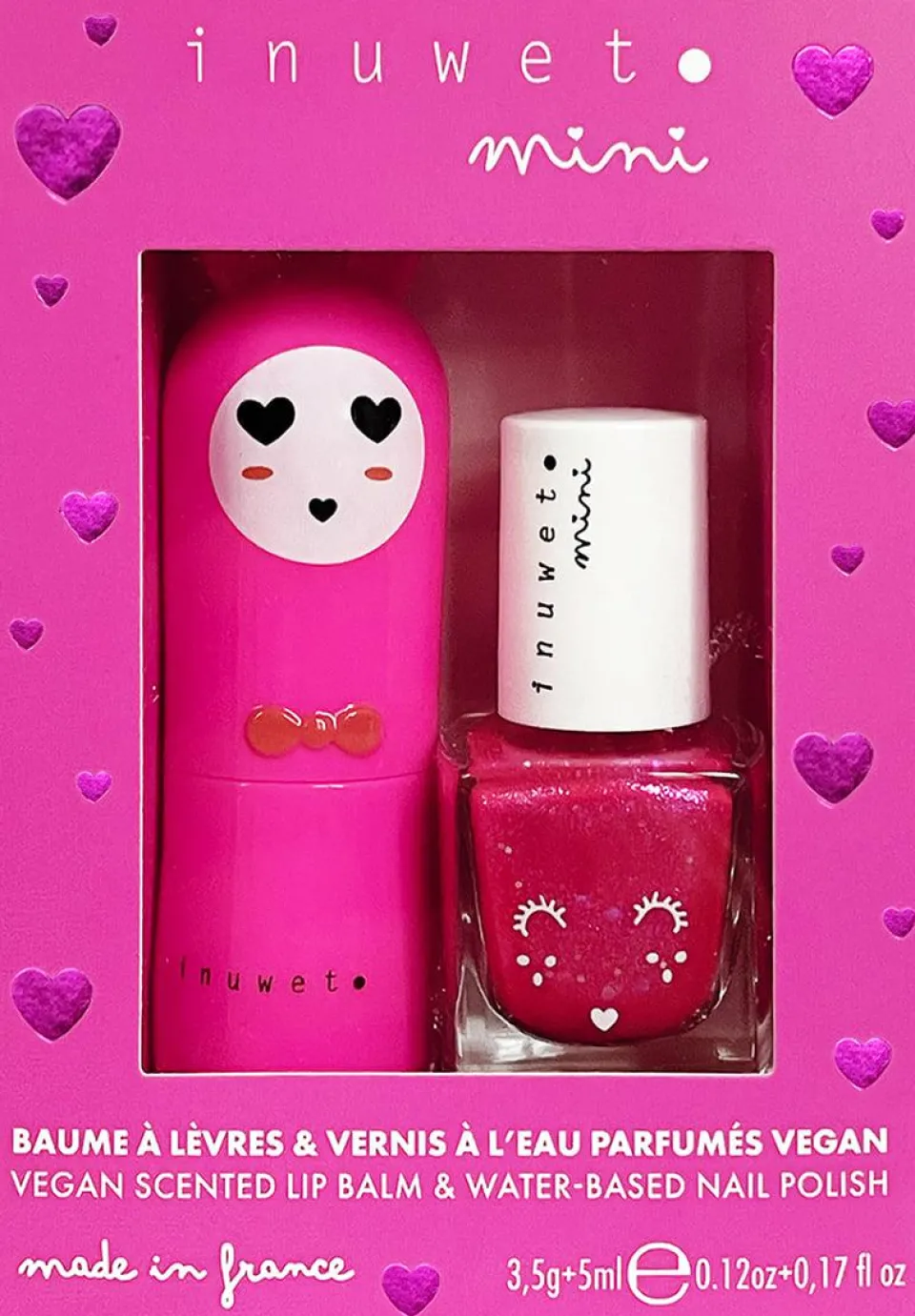 Parfum sucré et gourmand de cerise pour les lèvres, un vernis rose. Formules naturelles et 100% Vegan & Made in France.
