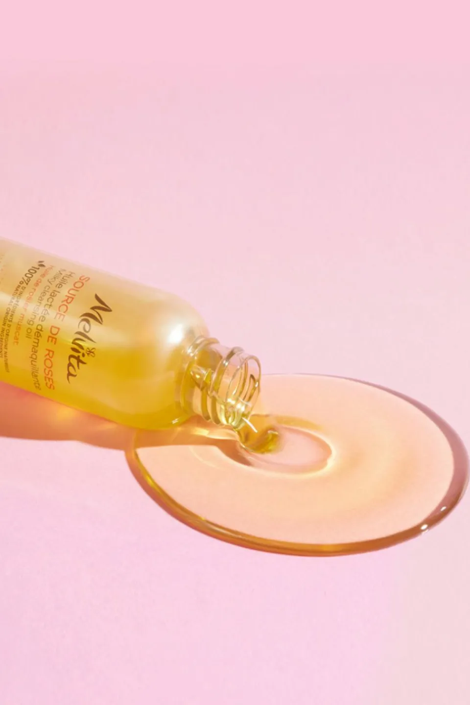 Enrichie en huile de rose sauvage bio, l’Huile Lactée Démaquillante élimine en profondeur les impuretés et traces de maquillage sans laisser de film gras sur la peau.